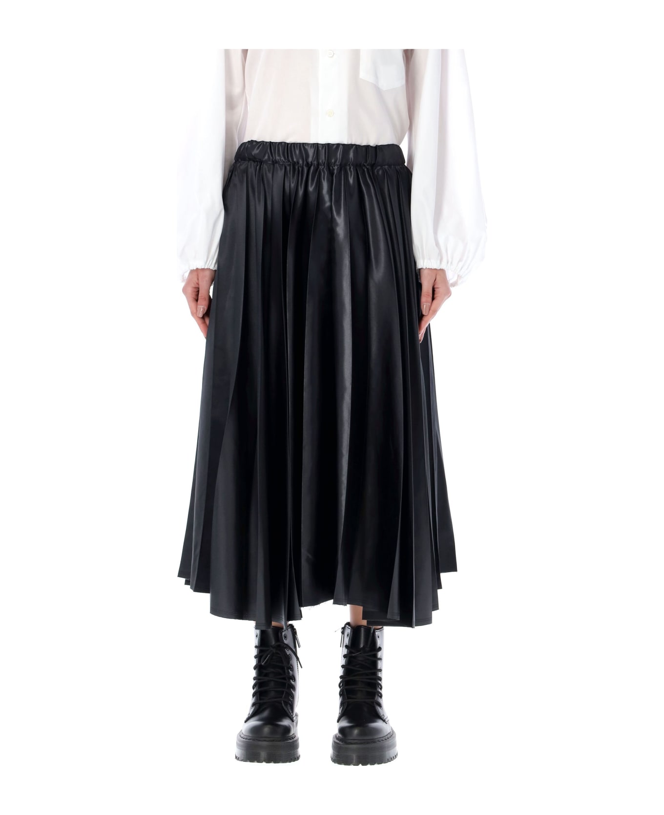 Pleated Skirt By Black Comme Des Garçons. Featuring: Elastic Waistband With Inner Drawstring Side Seam Pockets Pleated Design Unlined Mid-length Model Is 1,72 M Tall And She Is Wearing Size S