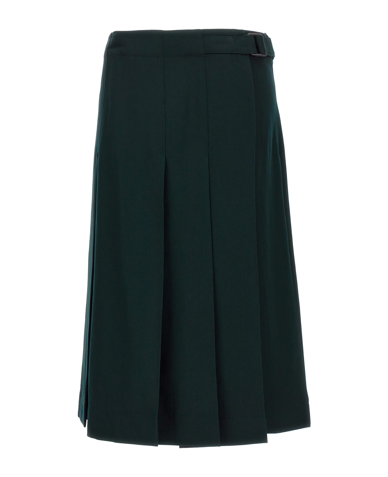 Midi wool 'Pleated wrap' skirt with pleats, asymmetric buckle closure, 'Caviar' tint.