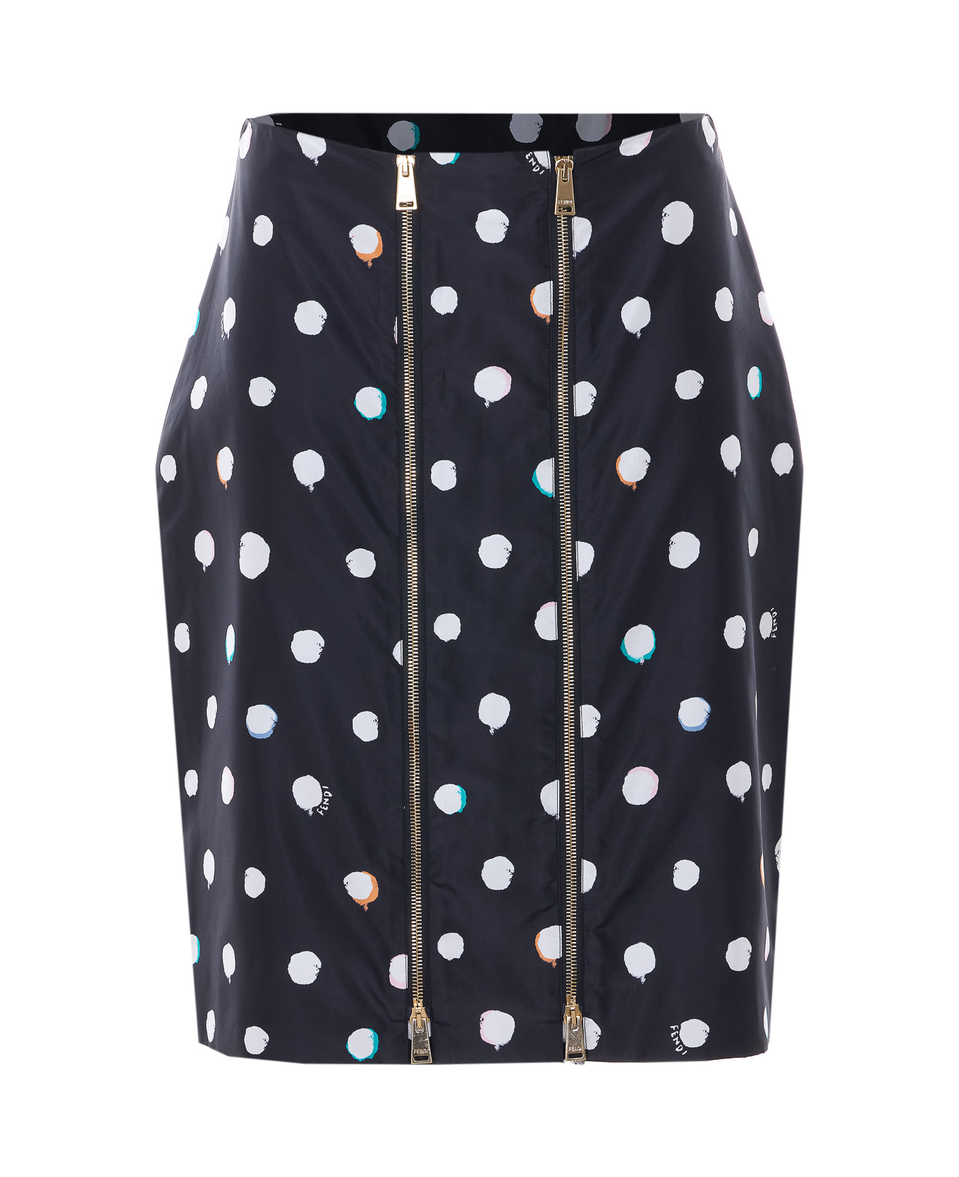Fendi black print dots skirt, double breasted zip detail, dots print Composition: 100% Silk