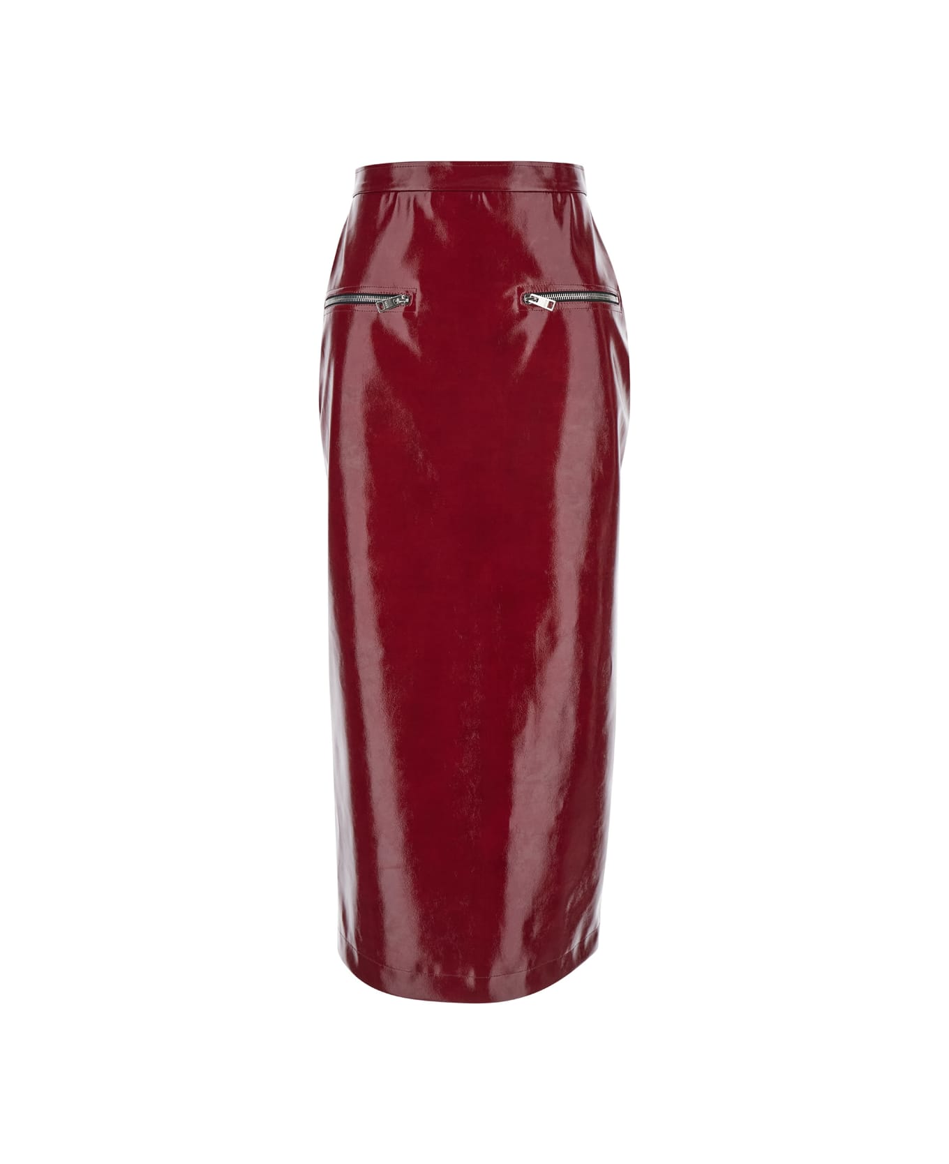 Rear Slit Zipped Shiny Skirt