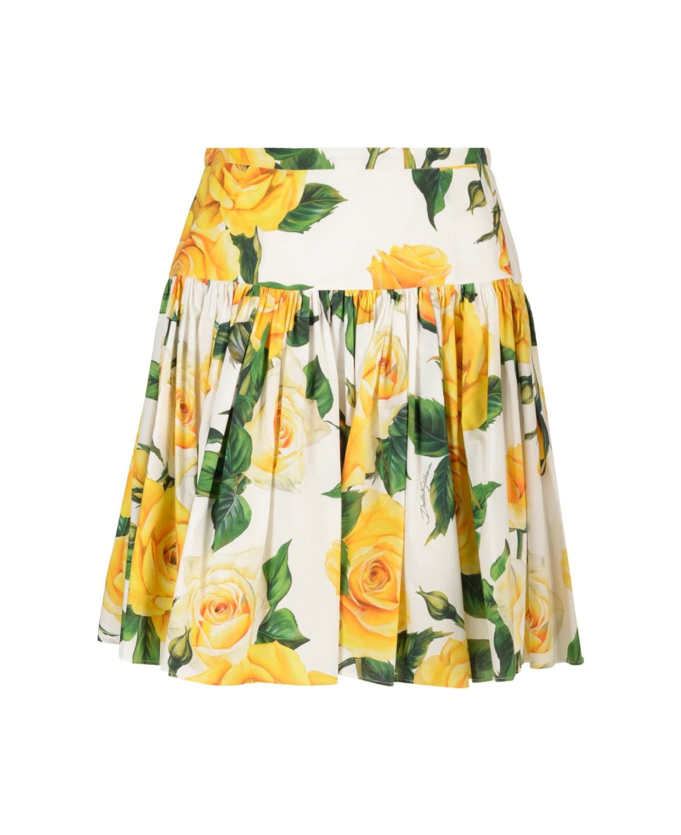 Cotton mini skirt with printed yellow roses by Dolce & Gabbana with concealed side zip. Composition: C. W. : COTTON 100%CO 100%CO