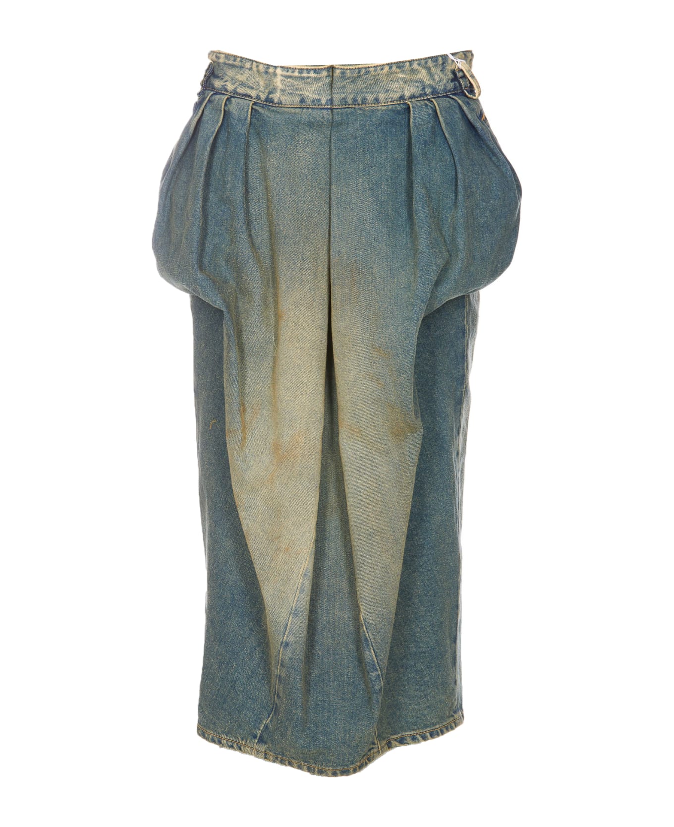 - woman denim skirt, frontal zip closure, split detail on the front, details
