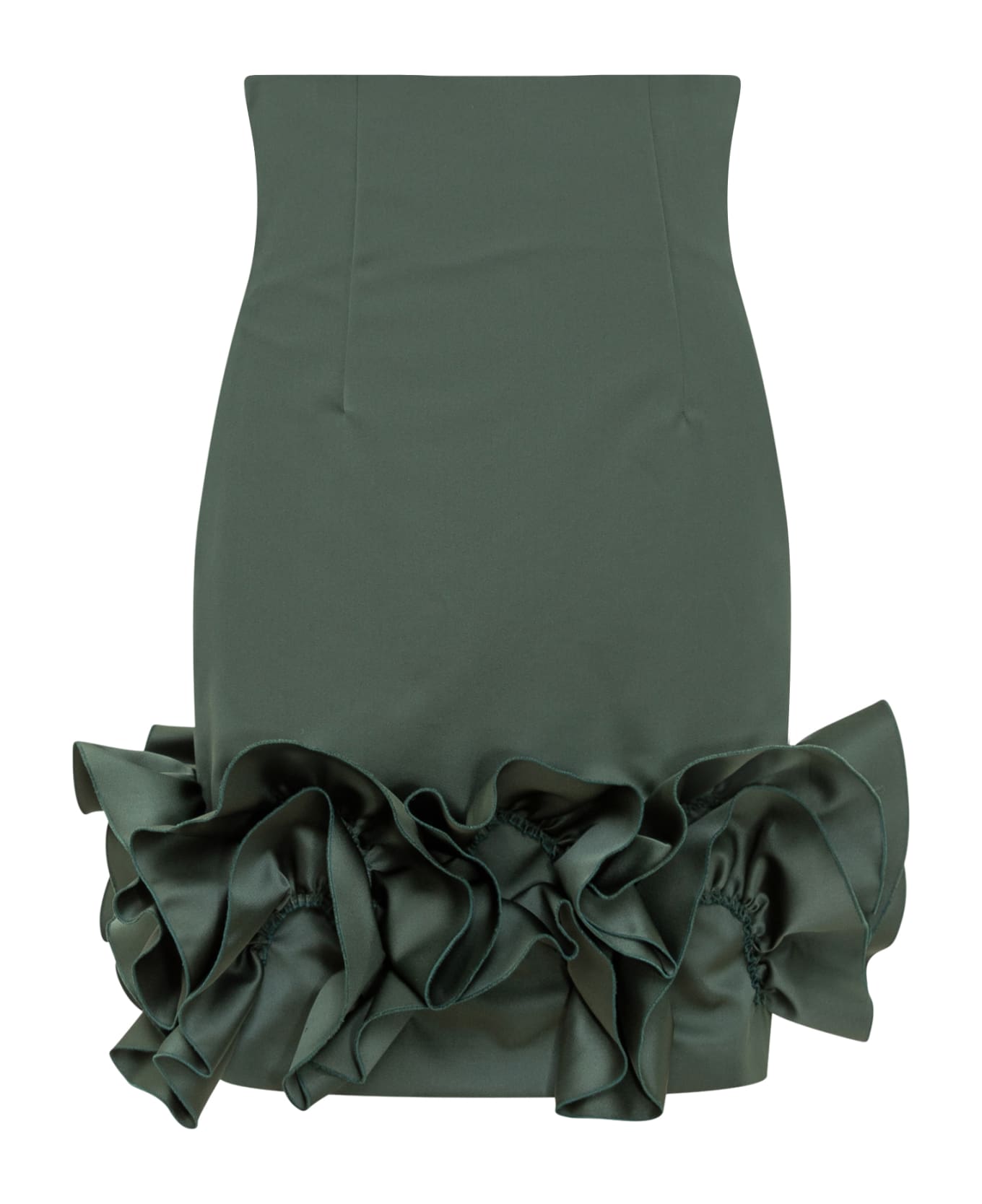Mini sheath skirt. High waist. Zip closure on the back. Ruffles on the bottom.