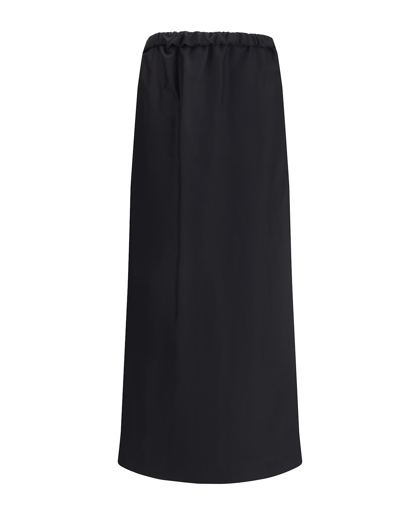 The row's midi saul skirt by the row is an essential piece with minimalist style, crafted from a refined cotton-silk voile. the floor-skimming length combines with a slightly flared fit, while the elastic gathers at the waist ensure comfort and delicacy for understated, timeless elegance.
