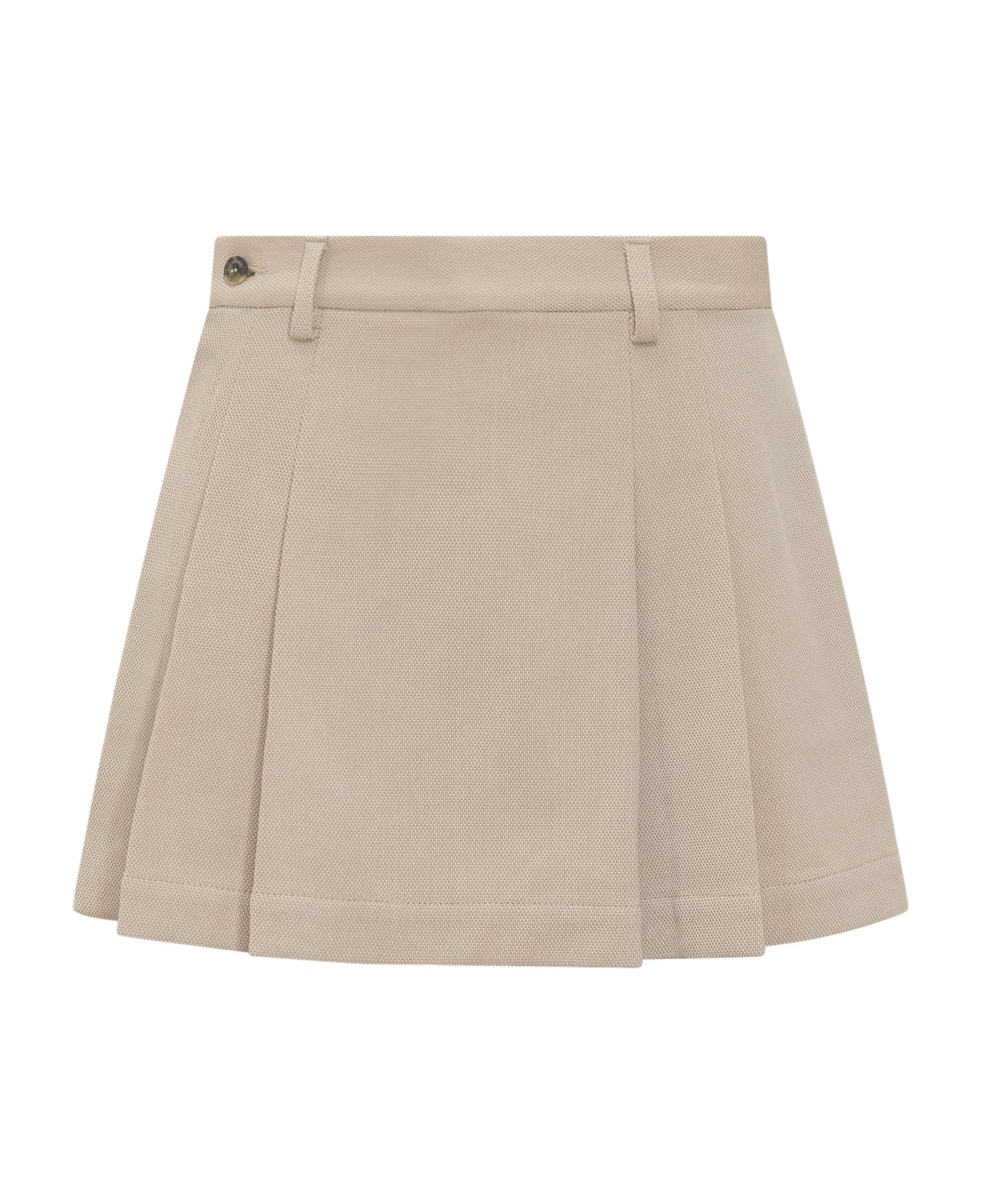 Short skirt. Button closure. Two pockets on the back. Belt loops.