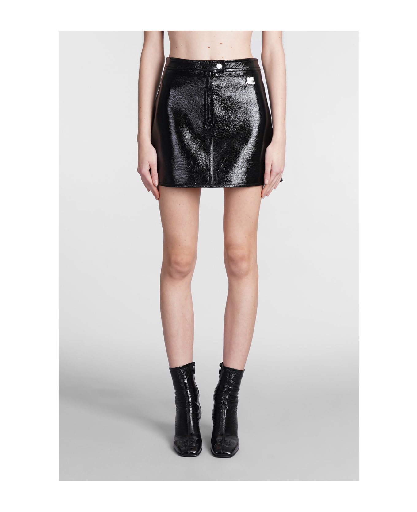 Skirt in black cotton, button and zip closure, embroidery logo, 88% Cotton, 10% polyurethane, 2% elastan, made in Serbia, Model is 180 cm and wears 36