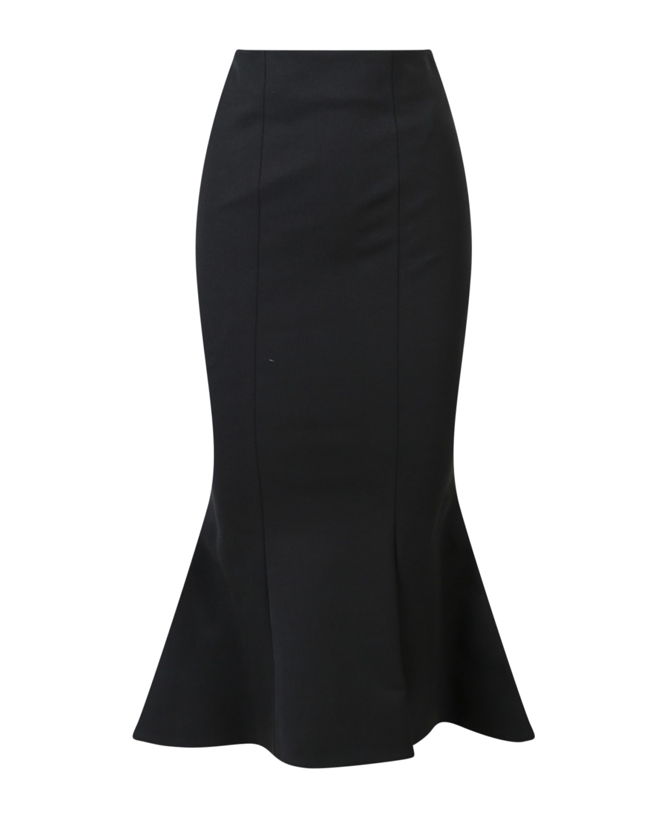 Grain-de-poudre longuette skirt - High Waist - Zip Closure On The Back - Slim Fit With Flared Bottom - Lined - 54% Cotton 42% Polyamide 4% Elastane - Lining : 55% Viscose 45% Polyester