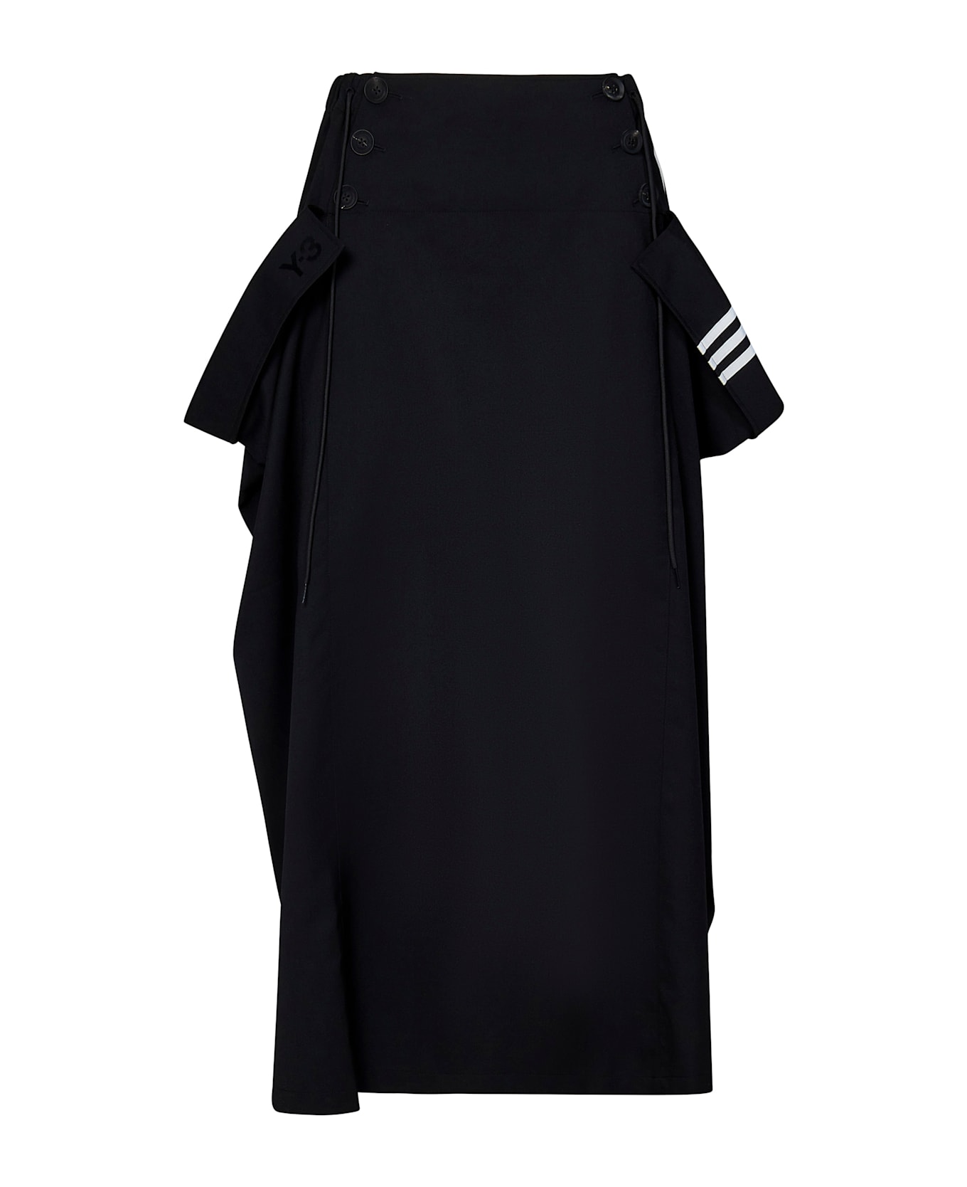 Composition: Side Zip Closure; Buttons On The Sides Waist With Hidden Drawstring Slit With Button On The External Seam; Central Vent On Asymmetric Hem Maxi Side Pockets With Tone-on-tone Y-3 Logo Print On The Right Pocket, White Striped Logo Print On The Left Pocket Ankle Length Black Colour 70% Polyester (recycled), 30% Wool Made In China