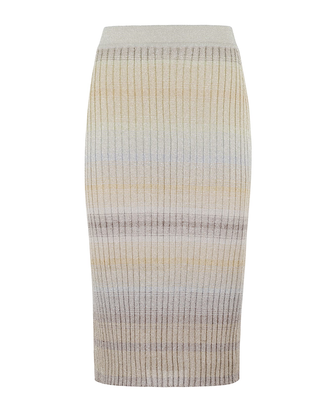 Skirt - Missoni - multi beige color - striped pattern - rib knit fabrication - shimmering lurex accents - ankle length - fitted fit