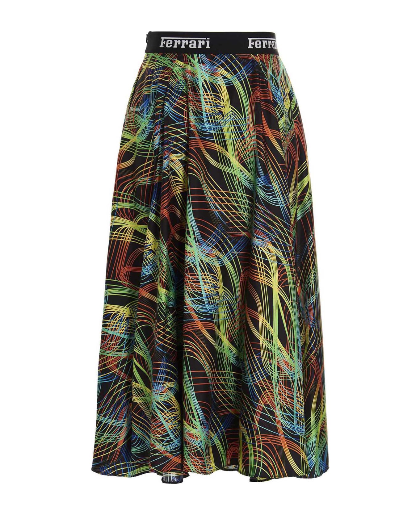 'Speedform' silk midi skirt with all-over print, logo elastic waistband, pockets and side zip closure.
