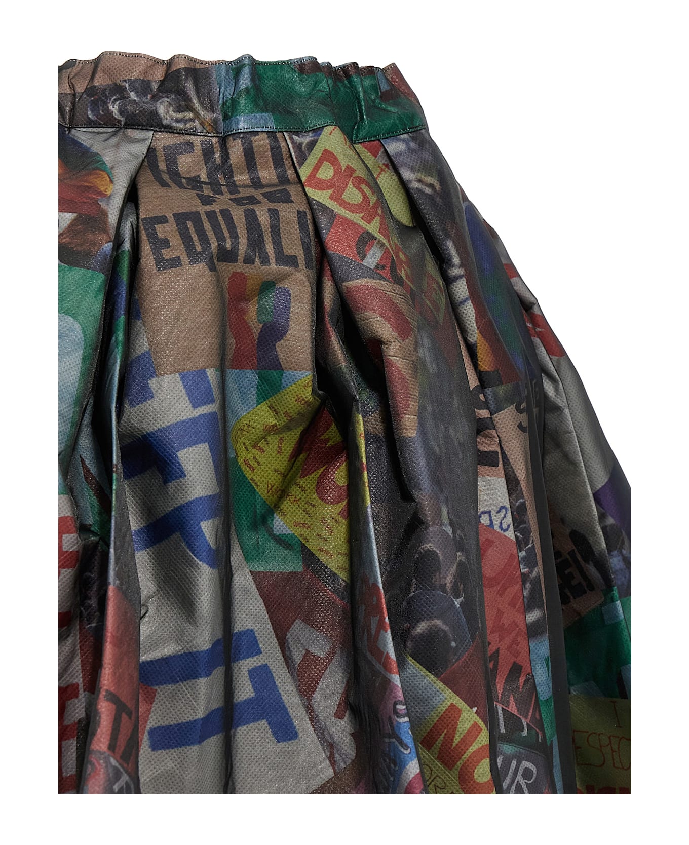 Nylon midi skirt, structured model with overlapping fabrics, elastic waistband, pockets, cupro underskirt. Composition: 100% nylon
