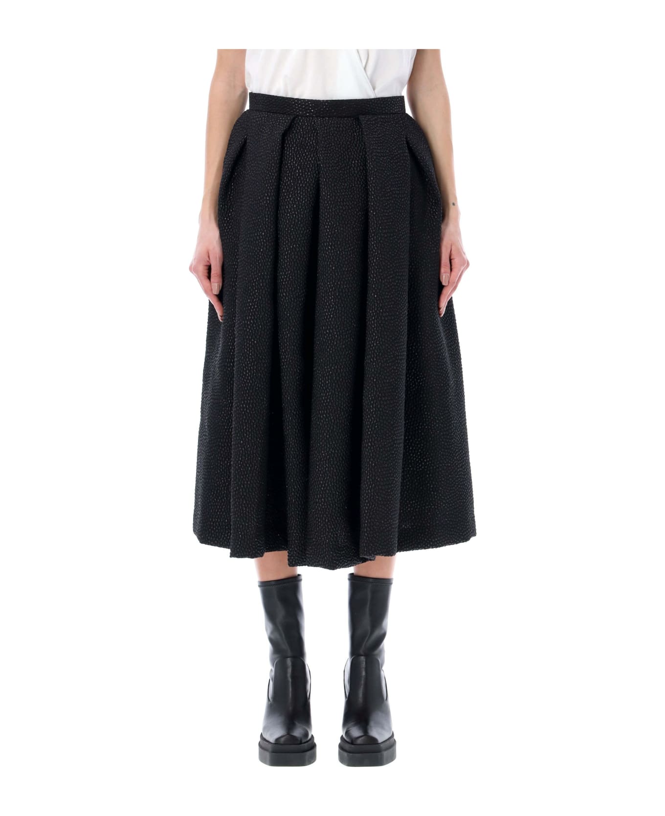 Textured Midi Skirt By Comme Des Garçons Comme Des Garçons. Featuring: Button And Zip Closure At Back Pleated Side Slit Pockets Midi Length The Model Is 1,72 M Tall And She's Wearing Size S