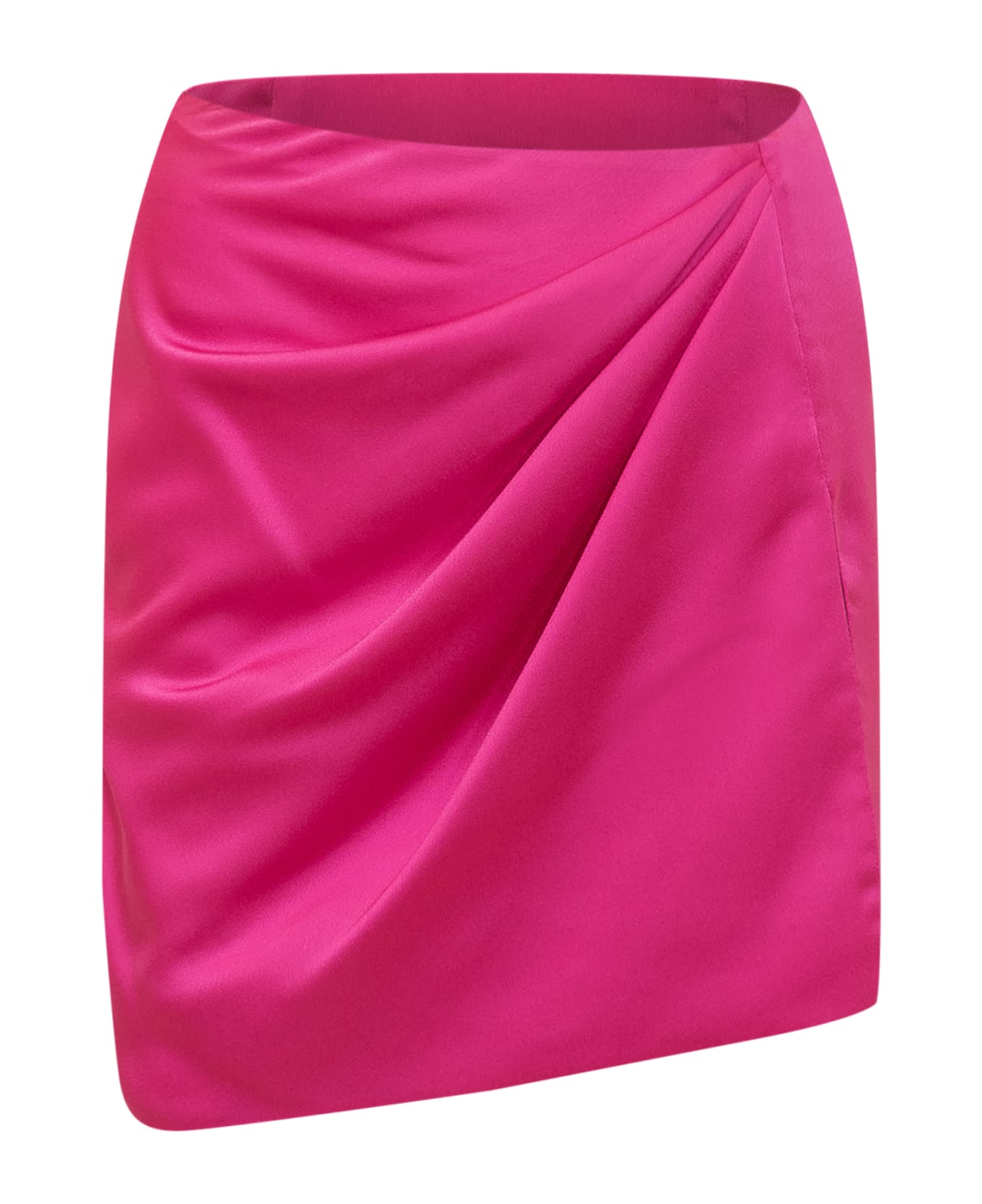 Satin miniskirt. Zip closure. Draping effect on the front.