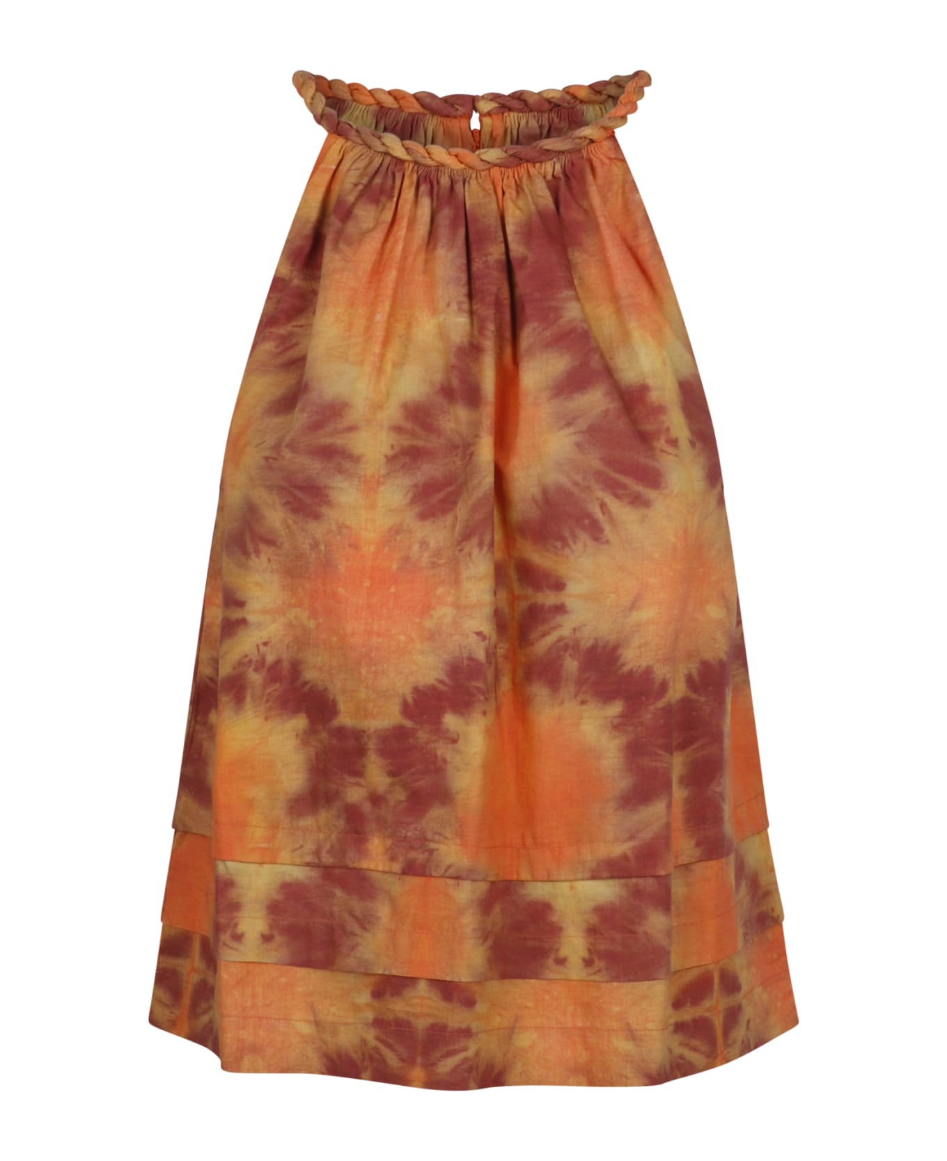 Tie-dye print top from ULLA JOHNSONTie-dye print.  Braid detailing. Sleeveless. Flounced hem. Concealed rear zip fastening 100% cotton,Made in India