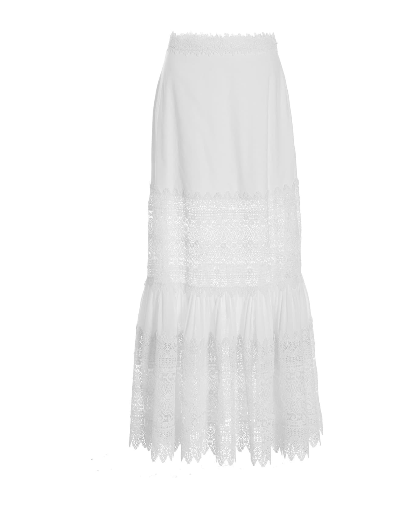 Viola' cotton skirt with long style lace inserts and an unseen zip at the waist.