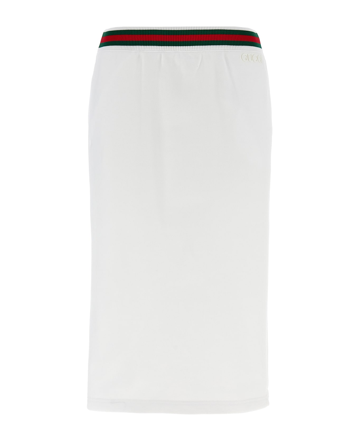 Cotton jersey midi skirt, Web fabric elastic with adjustable drawstring at the waist, front logo patch, pockets, back split. Composition: 100% cotton
