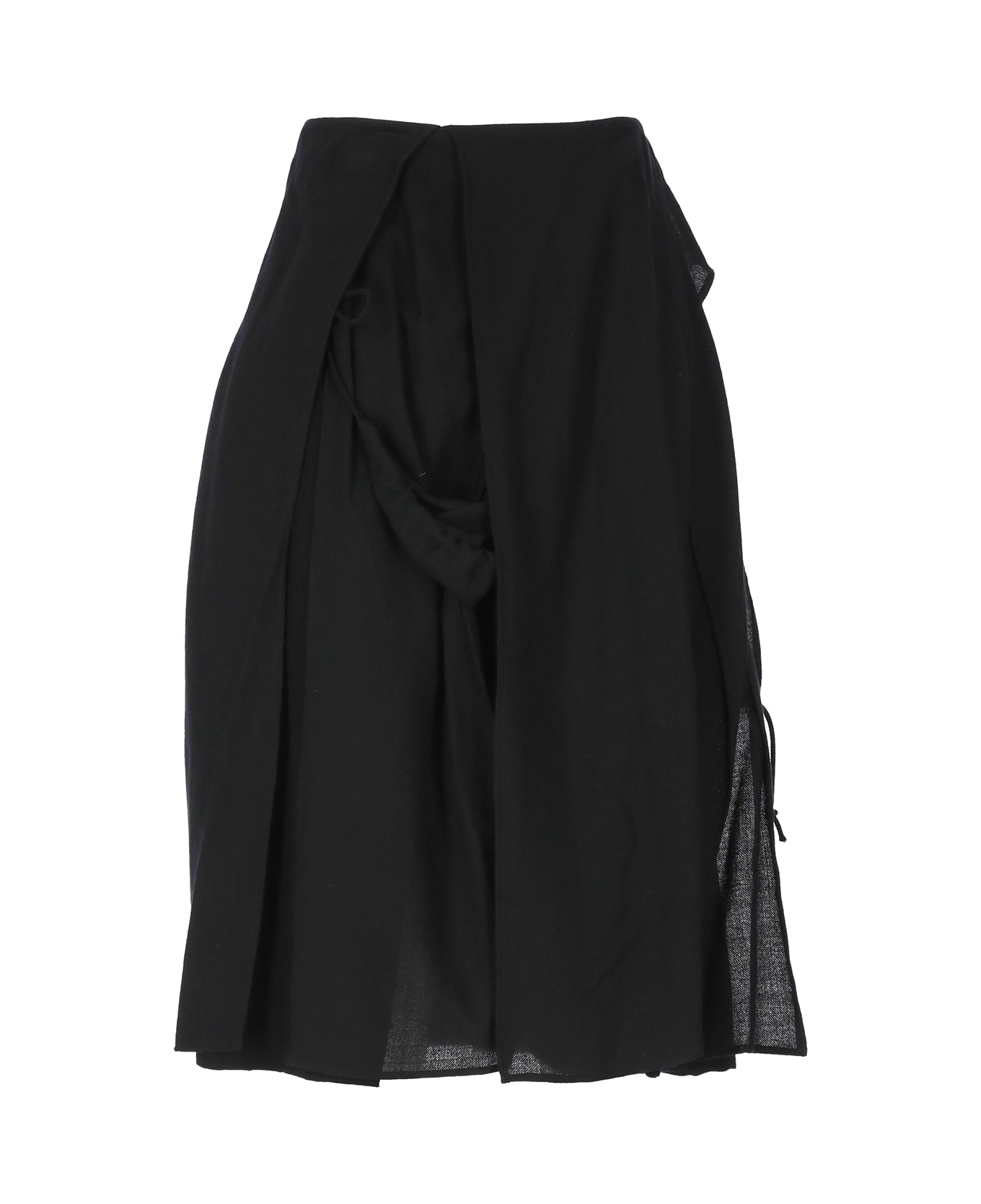 - Black Yohji Yamamoto wool skirt for woman - Front welt pocket - Drawstrings at waist - Rear zip fastening
