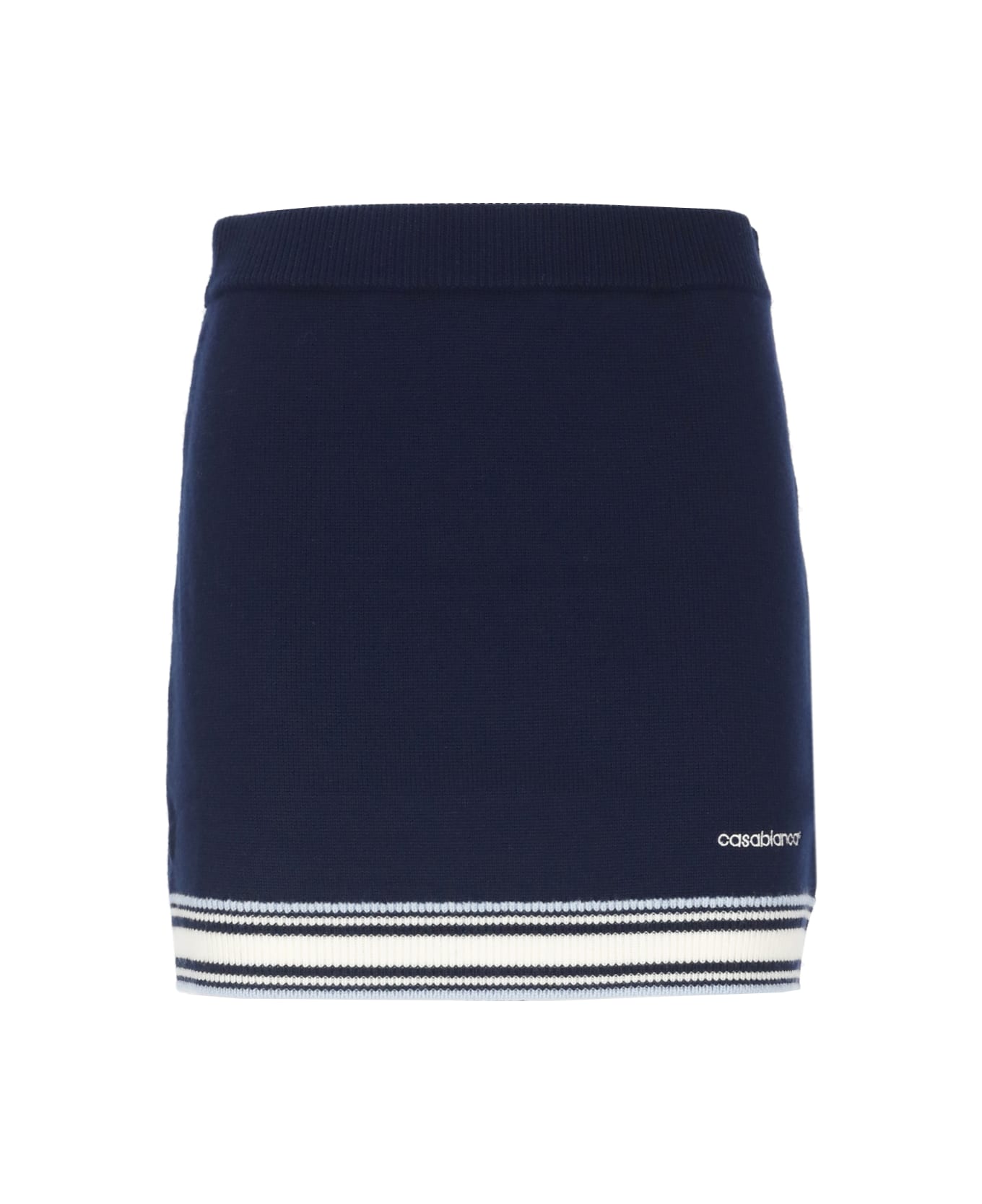 - Blue Casablanca wool skirt for woman - Elastic waist - Contrasting color hem - Front contrasting color logo at hem Composition: 100% Merino Wool Embroidery:, 100% Polyester