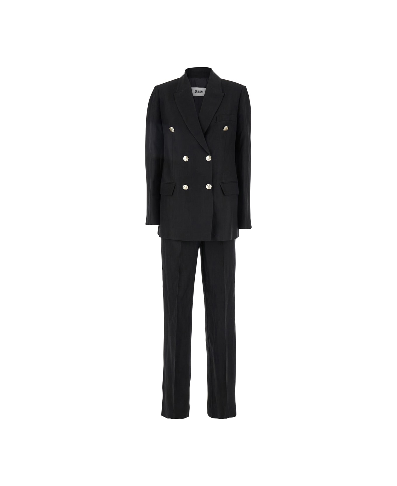 Black Double-breasted Suit With Notched Revers In Viscose And Linen Blend Woman