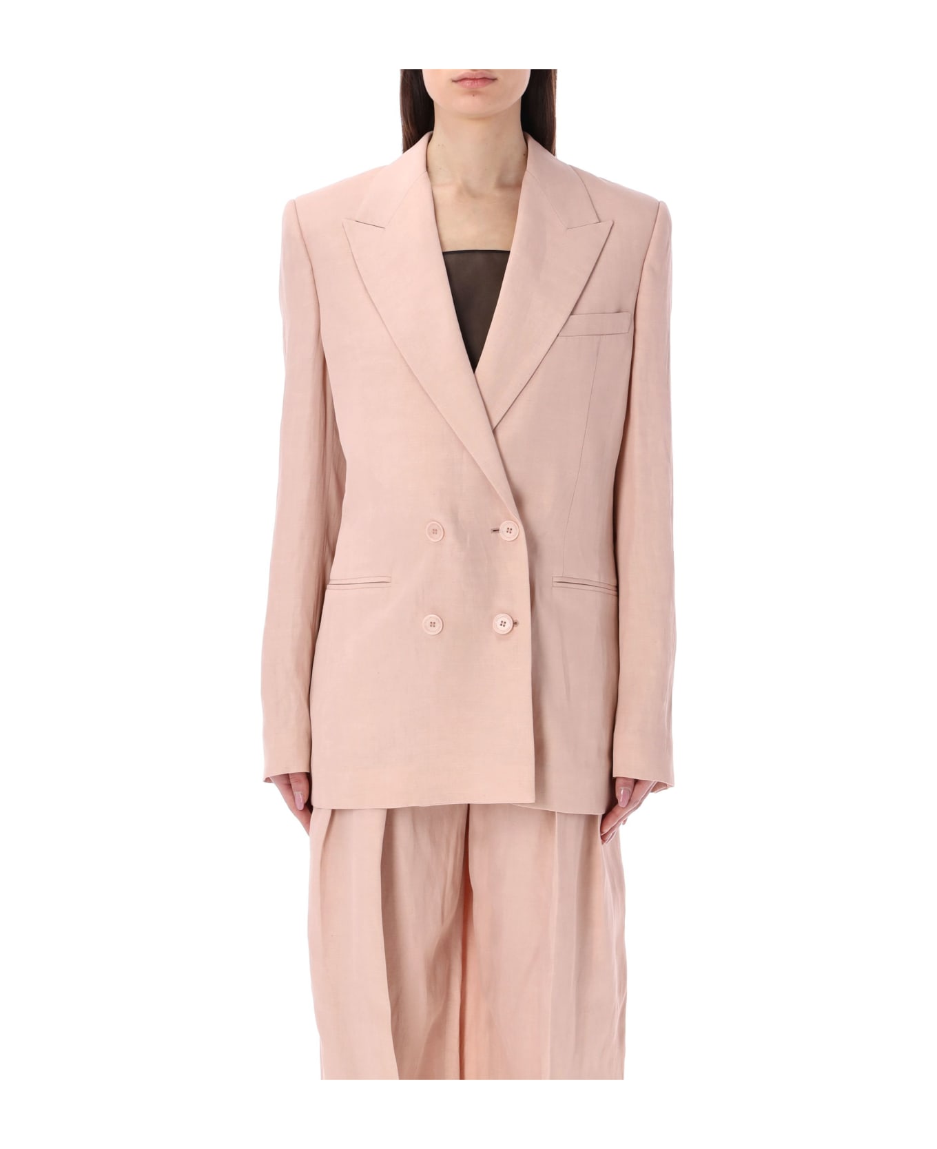 Viscose And Linen Double-breasted Jacket By Stella Mccartney. Featuring: Peak Lapel Double-breasted Button Fastening Welt Chest Pocket Seamed Pockets At Hips Padded Shoulder Long Sleeves With Buttoned Cuffs Straight Hem Model Is 1,72 M Tall And She Is Wearing Size 40
