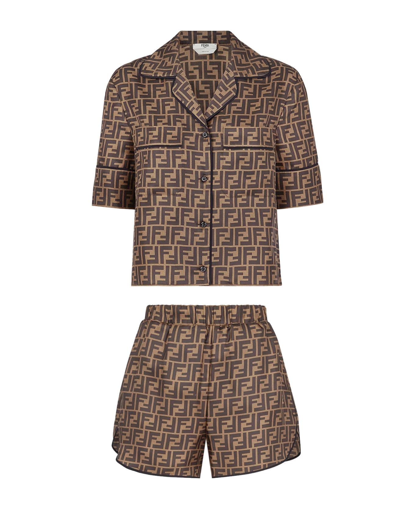 - Shirt With Bowling Collar And Short Sleeve - Short With Elastic Waistband - Detail With Matched Bag - Made In Italy - 100% Silk