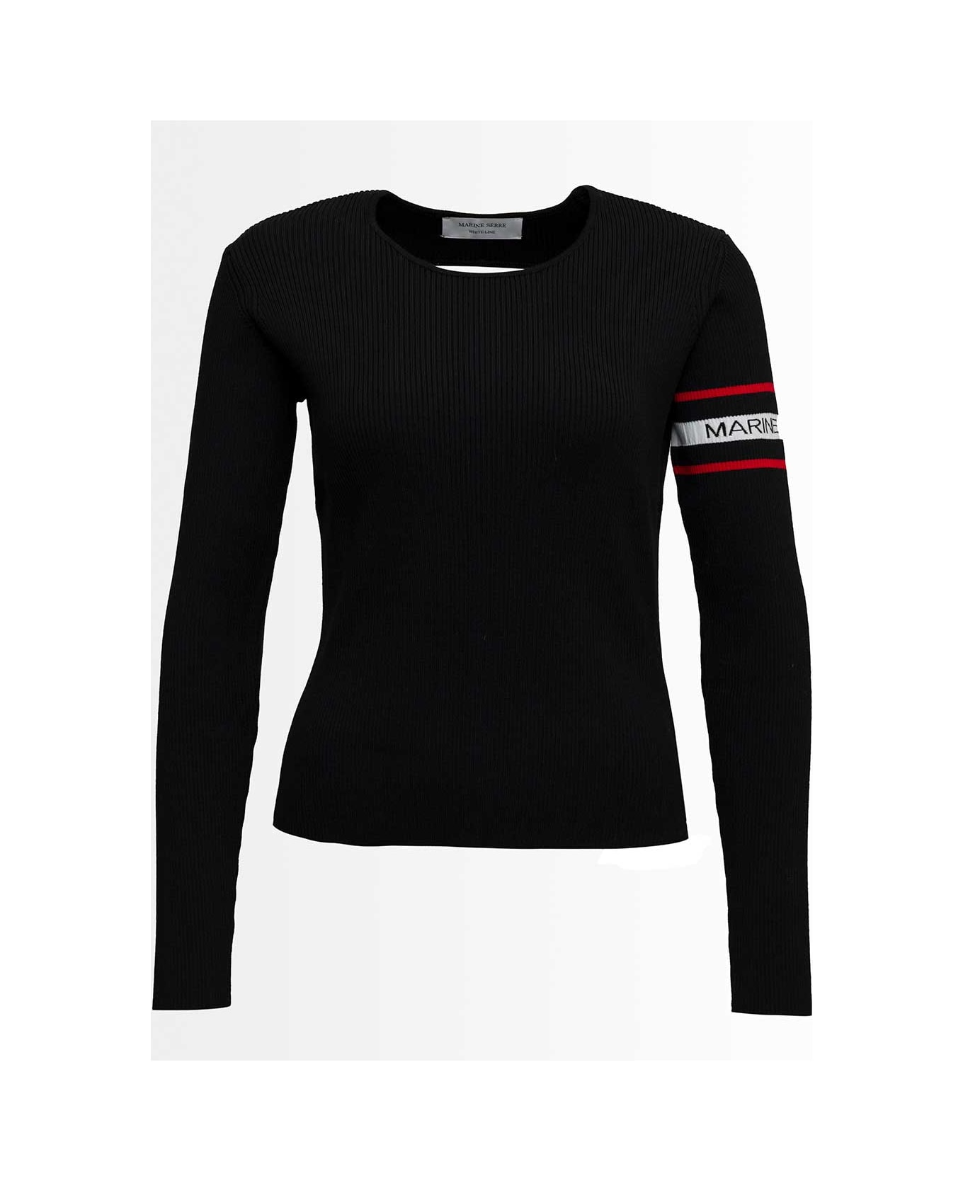 Sweater Crew neck Black Stretch fabric Back uncovered Long sleeves Logo on the shoulder