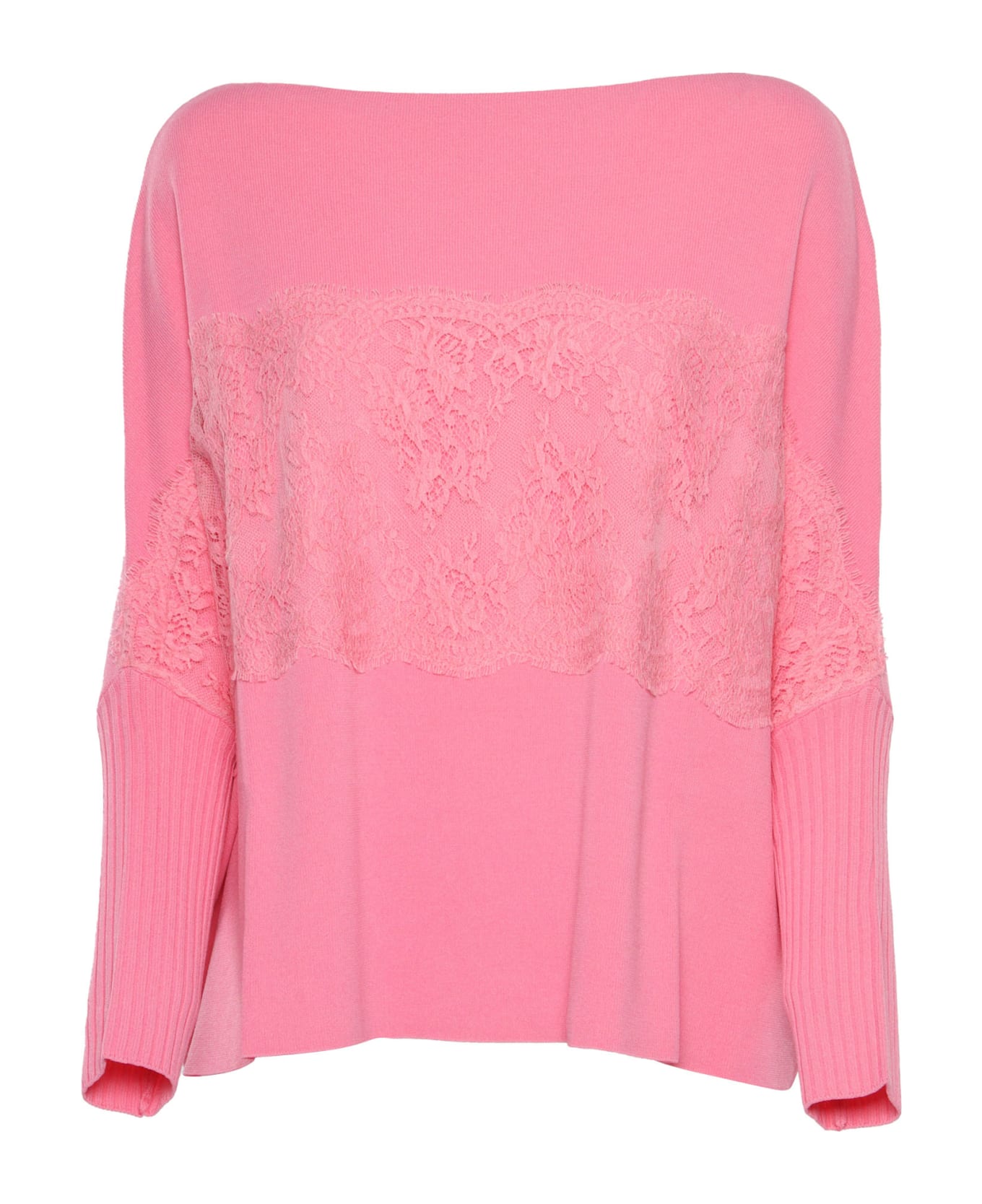 Viscose blend sweater, wide neckline, lace detail, maxi ribbed edge