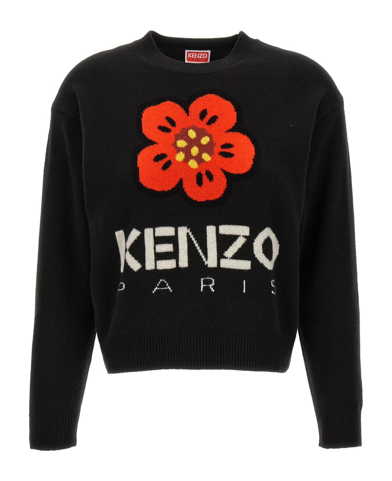 'Boke flower' wool, crewneck sweater with front intarsia.