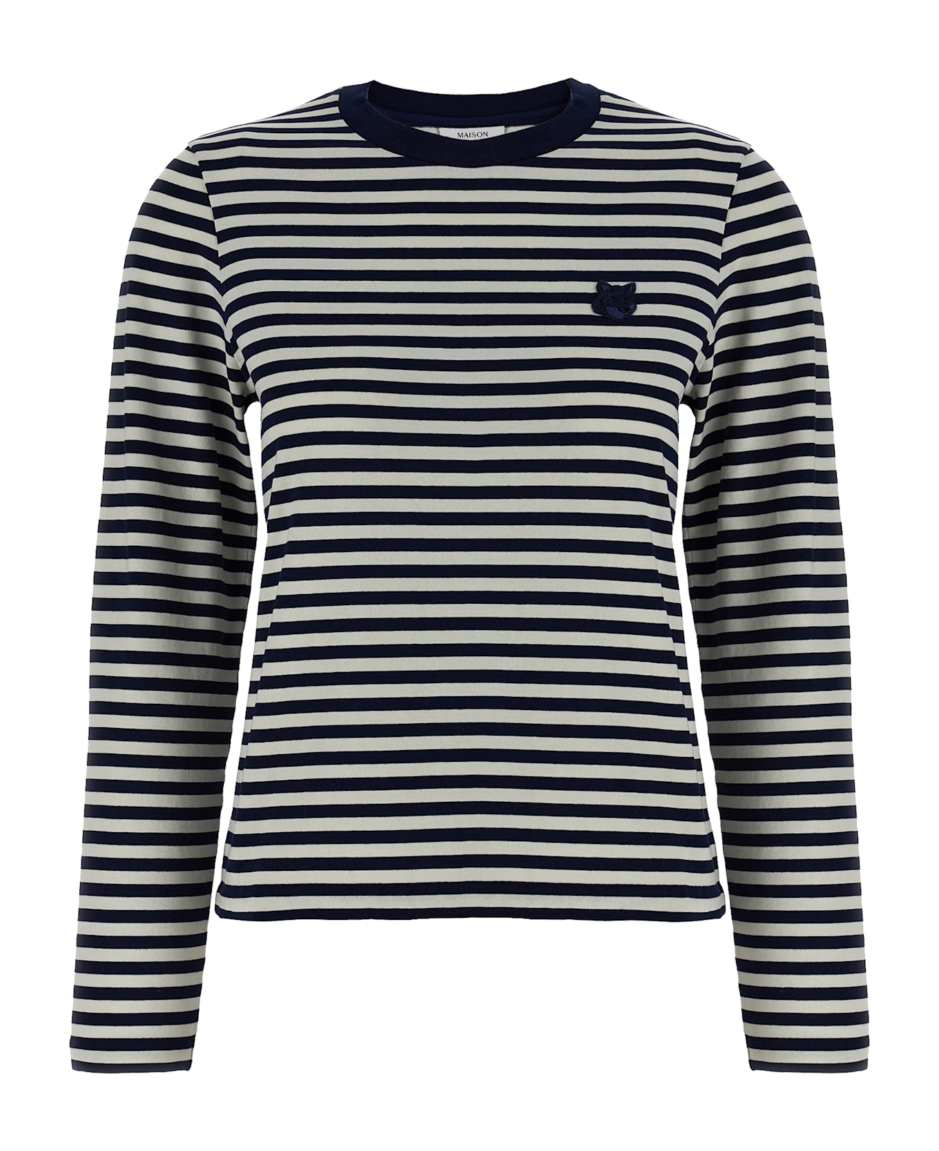 Striped cotton sweater, front 'Bold Fox Head' patch, crew neck, long sleeves.