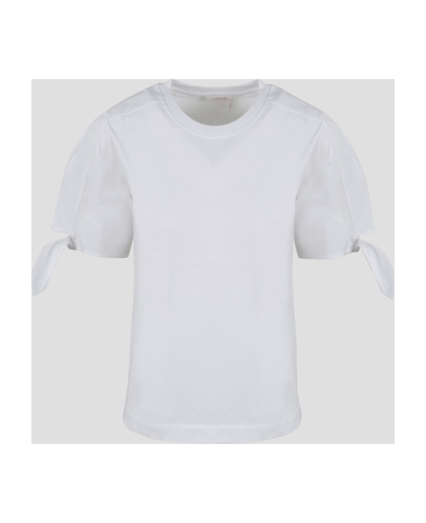 See by Chloè t-shirt in organic cotton jersey, with cotton poplin bow details. - SS23 - Regular fit - Ribbed crew neck - Short sleeve - Puff sleeves with bow cuff - Made in Portugal - 100% Cotton