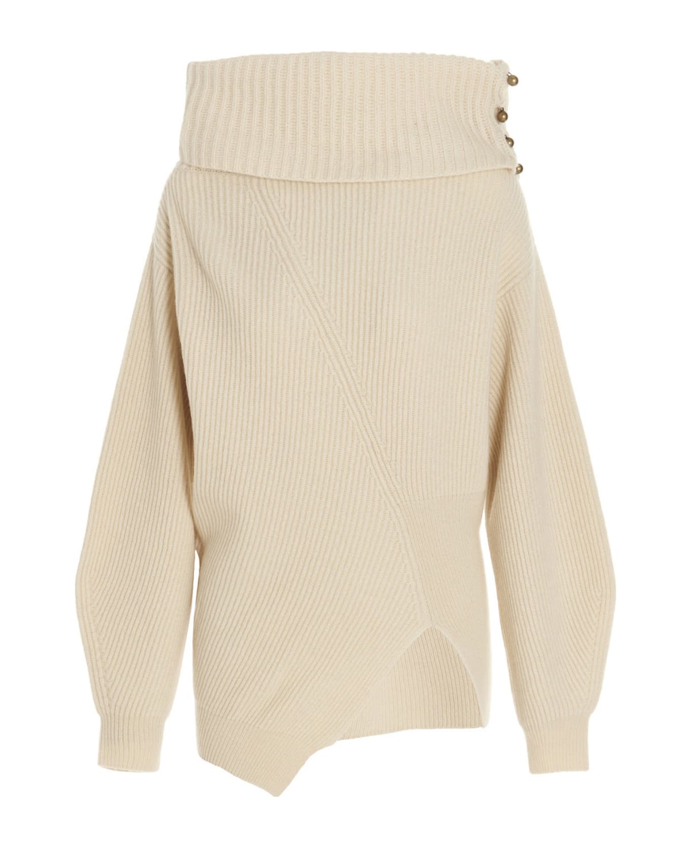 Ribbed cashmere and wool sweater featuring a loose collar detail with buttons on the side, a front split and long sleeves. : made in sustainable materials. Composition: 95% cashmere 5% virgin wool