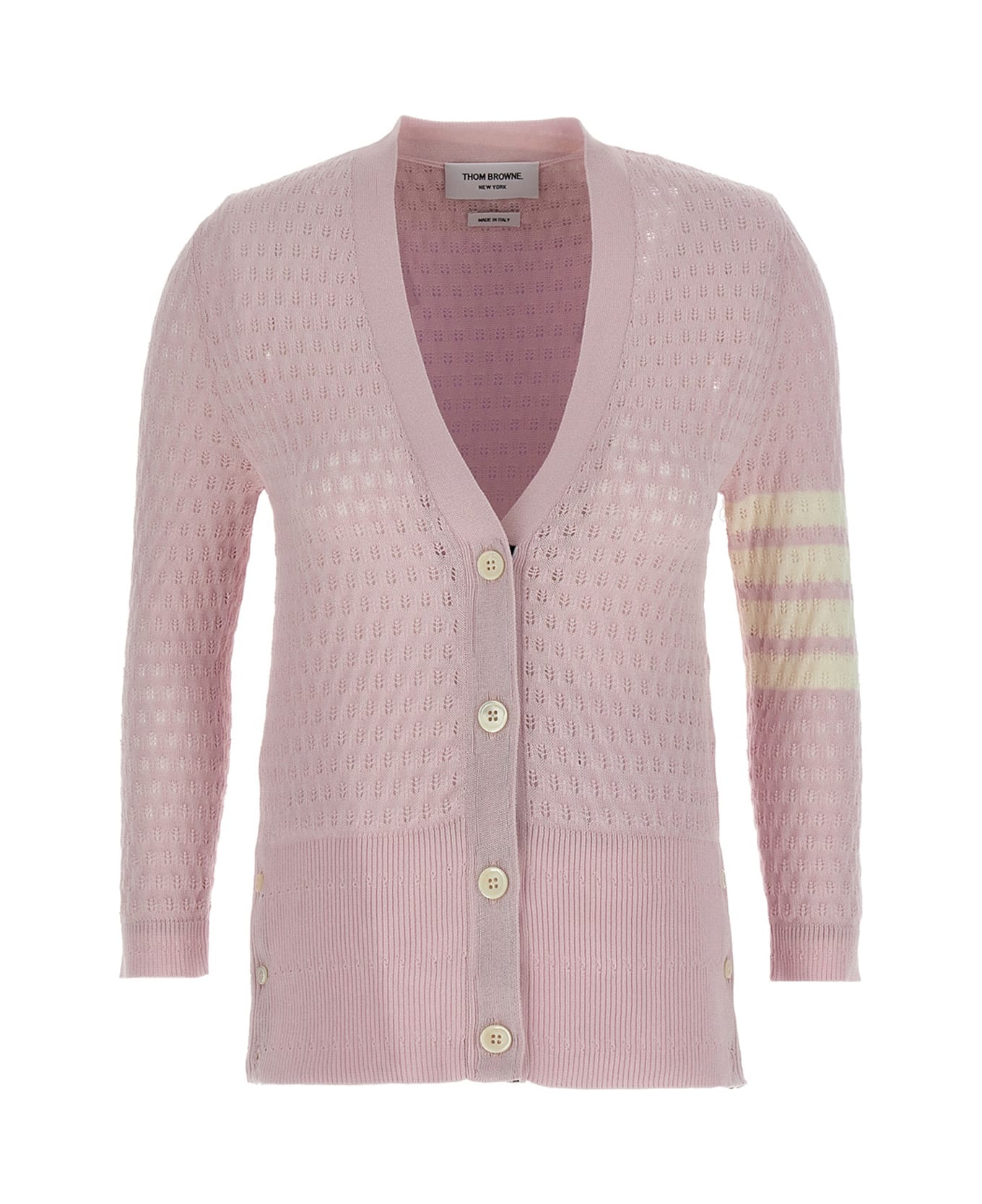 Stitch cotton and silk blend cardigan with '4 Bar' detail on the sleeve, a V-neck, button closure, and long cuffed sleeves. Composition: 70% cotton 30% silk