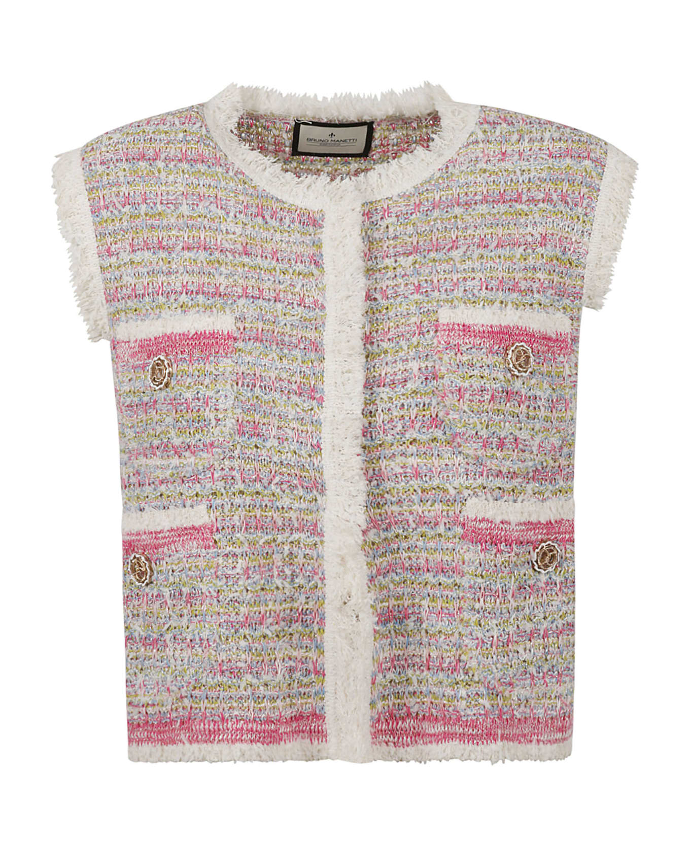4 Pockets Tweed Sleeveless Cardigan from Bruno Manetti
