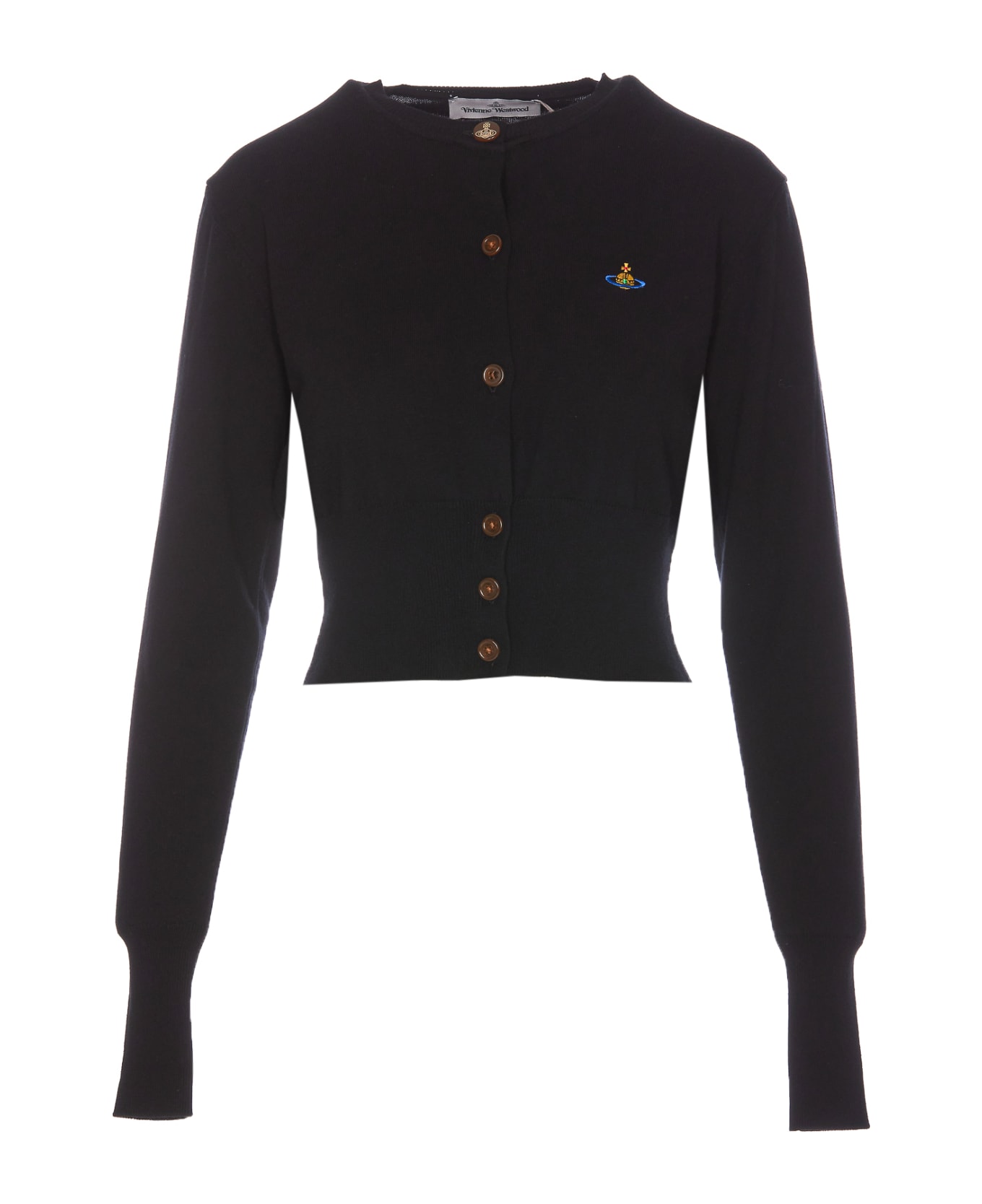 Vivienne Westwood black Bea cropped cardigan, frontal buttons closure, long sleeves, embroidered Orb logo Composition: 85% Cotton, 15% Cashmere