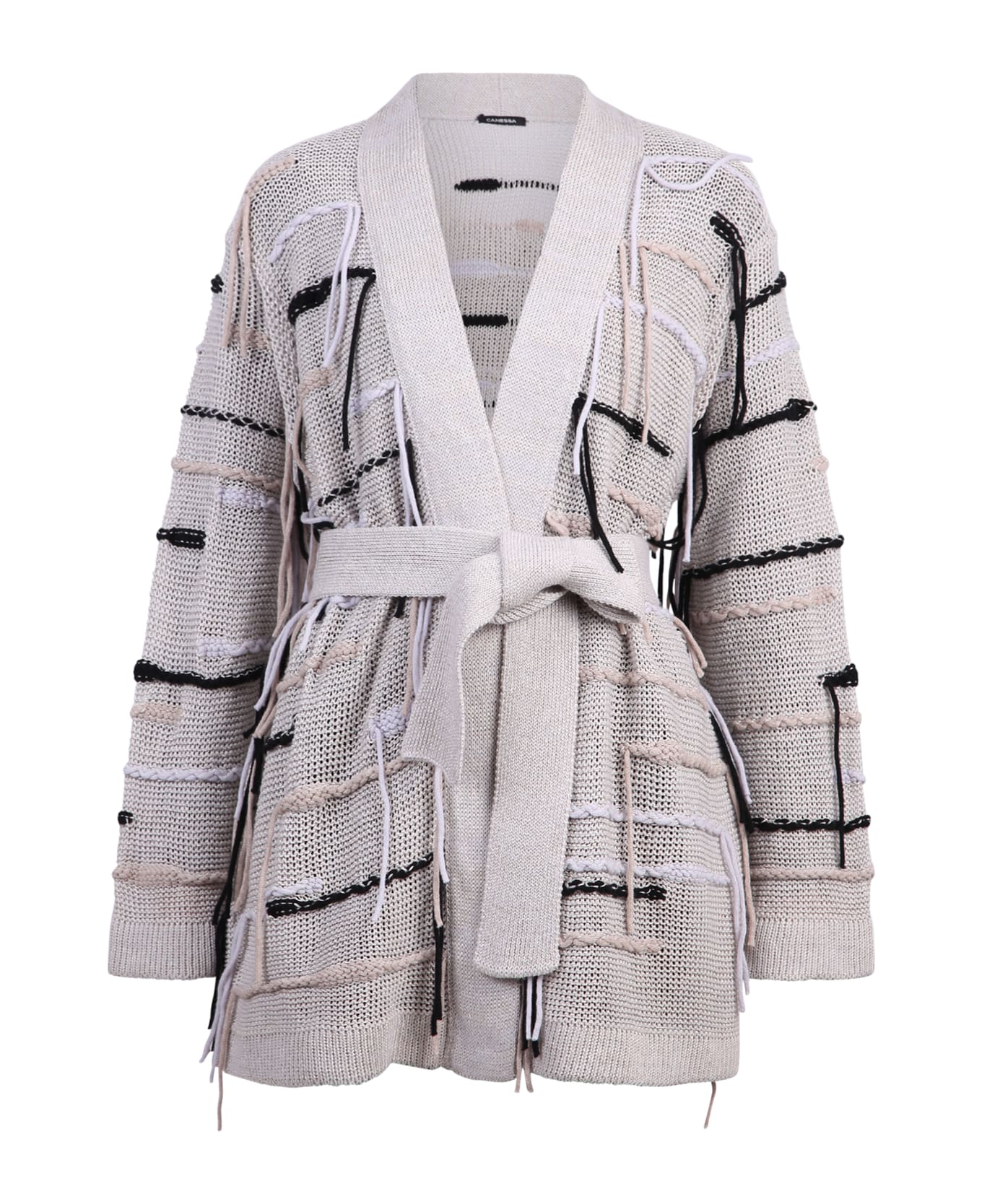 Belted cardigan from Canessa: Beige belted cardigan with contrasting inserts, V-neck and relaxed fit.