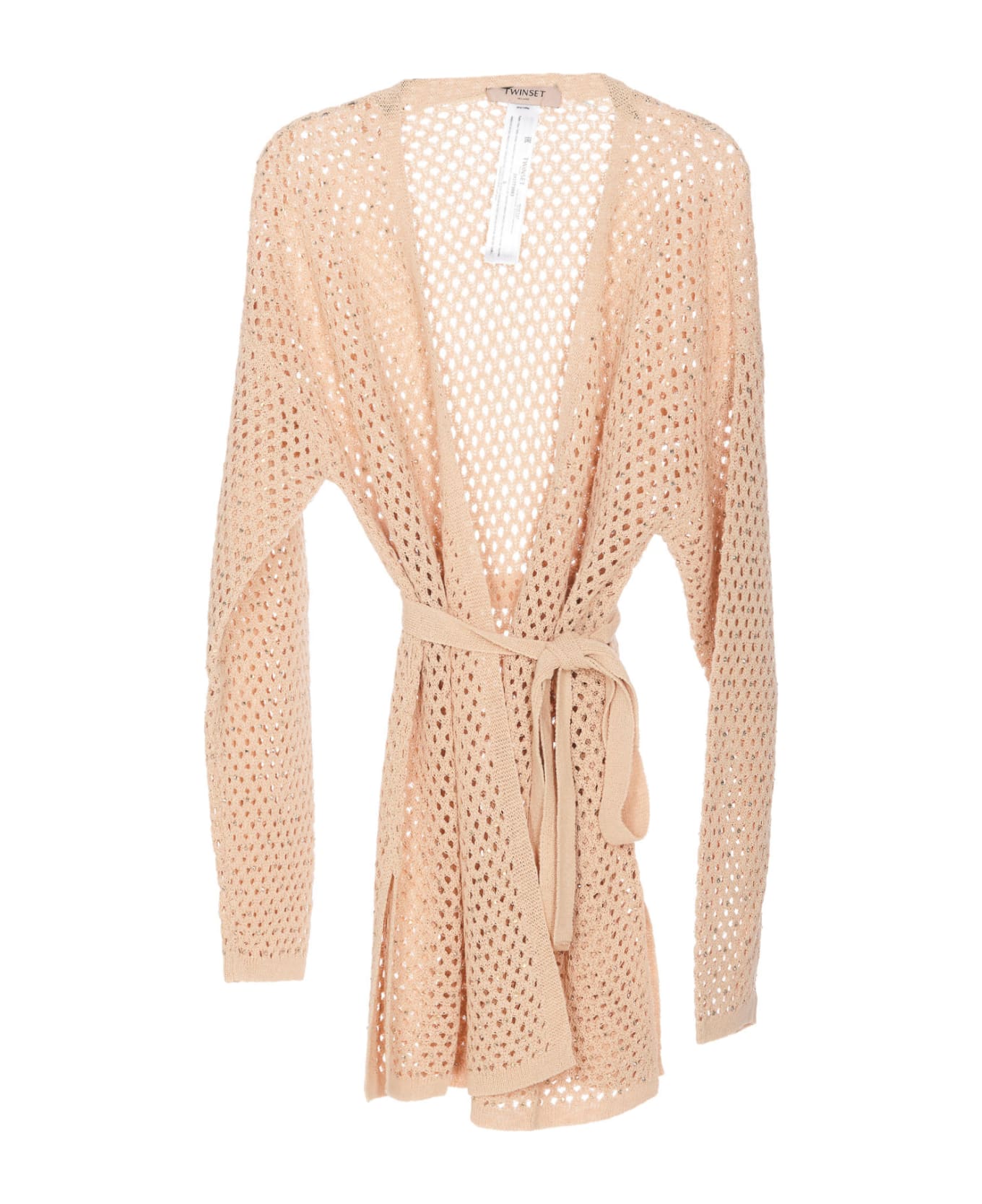 Twinset ginger sun cardigan with belt closure, all over applications details, long sleeves Composition: 43% Lin, 36% Cotton, 21% Polyamide