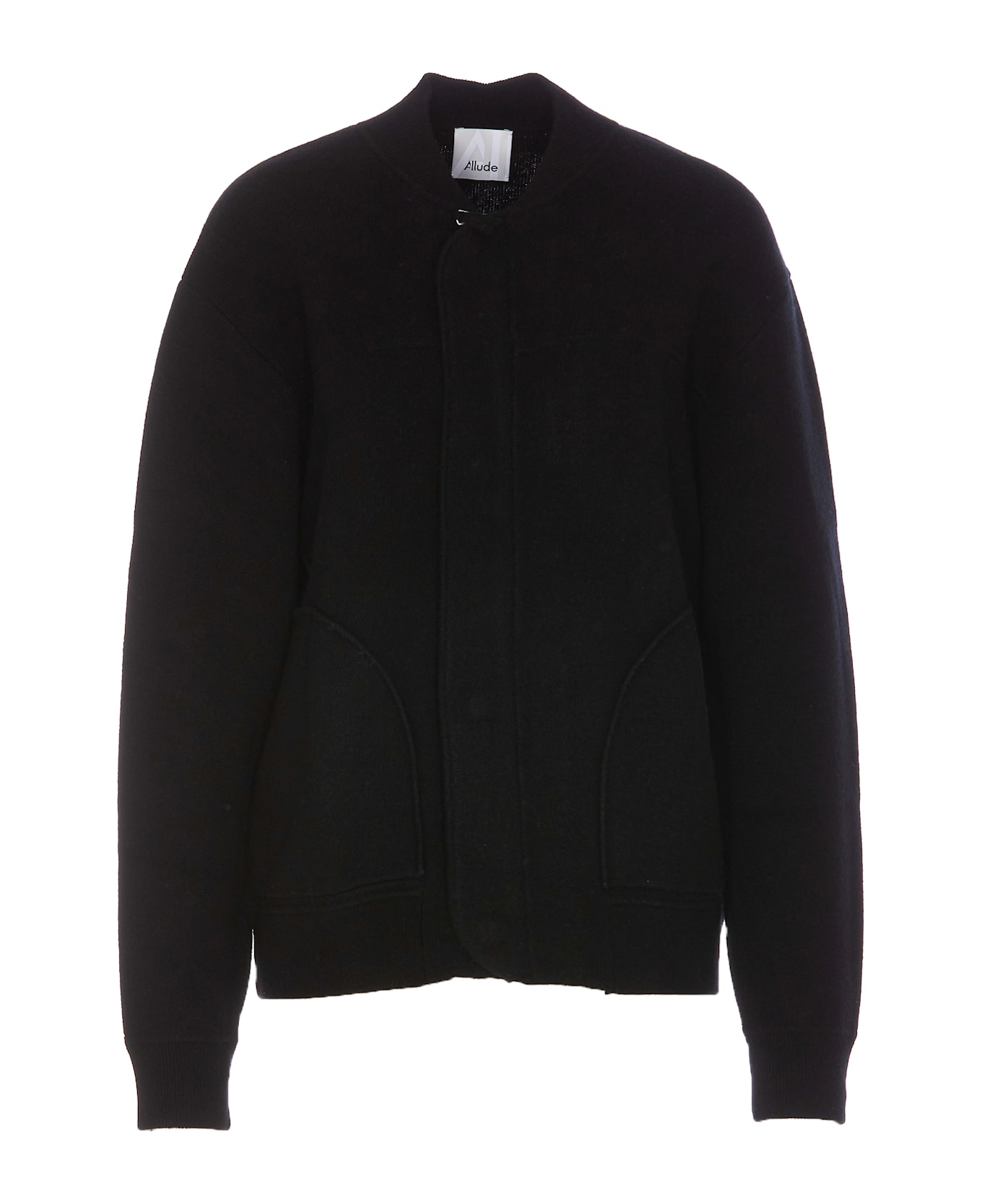 Allude black cardigan with frontal zip and buttons closure, crewneck, long sleeves, pockets