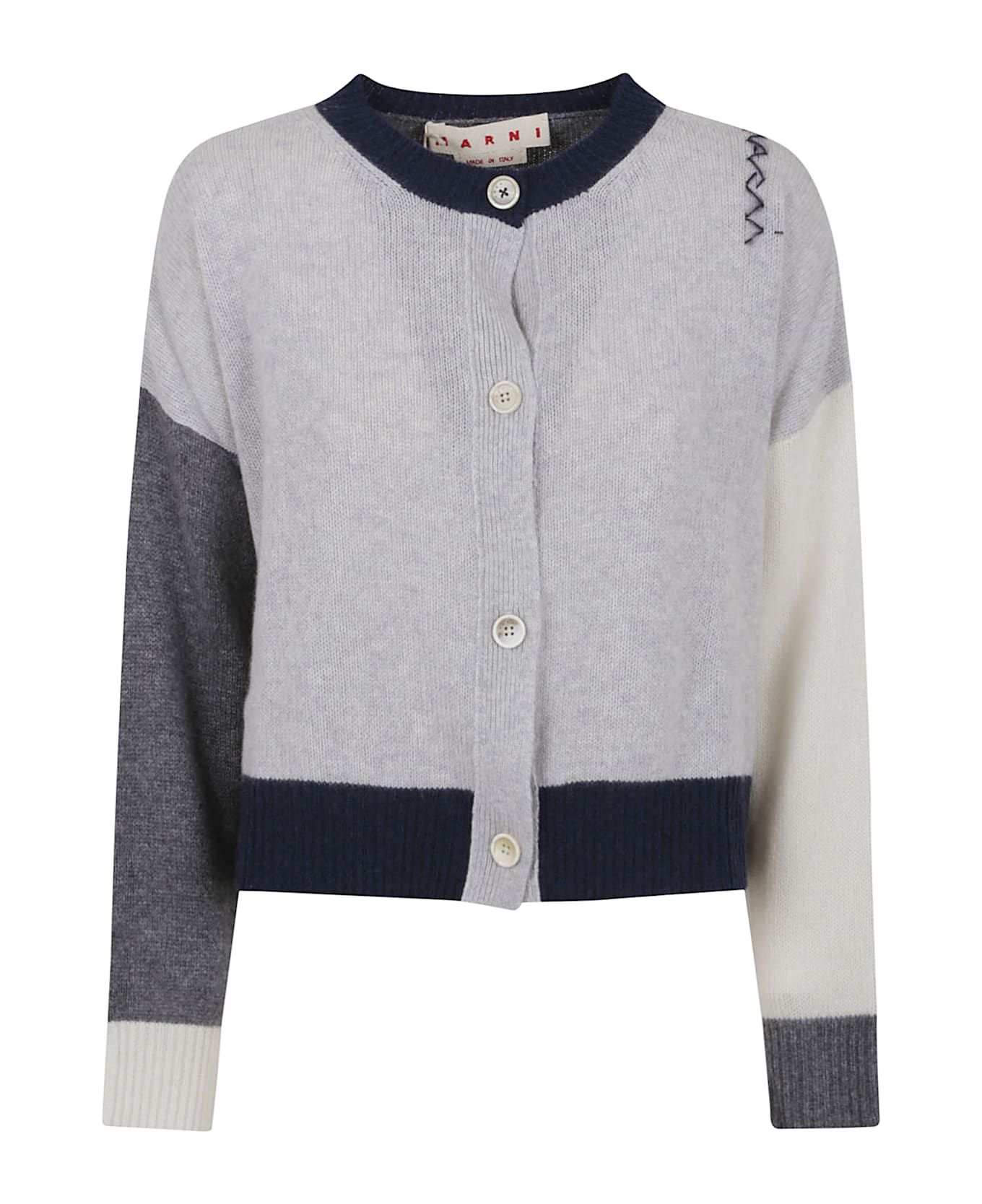 Pure cashmere cardigan by MARNI. Crewneck; long sleeve; front button closure; featuring hand-embroidered Marni Symbol on the shoulder. Loose fit design with dropped shoulder.