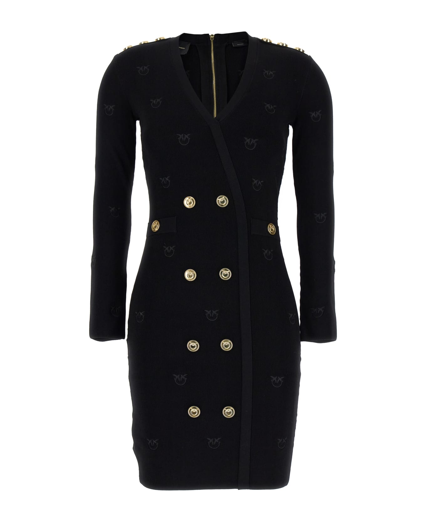 'Drago' viscose knit dress with all-over jacquard logo, slim stretch fit and gold logo buttons.