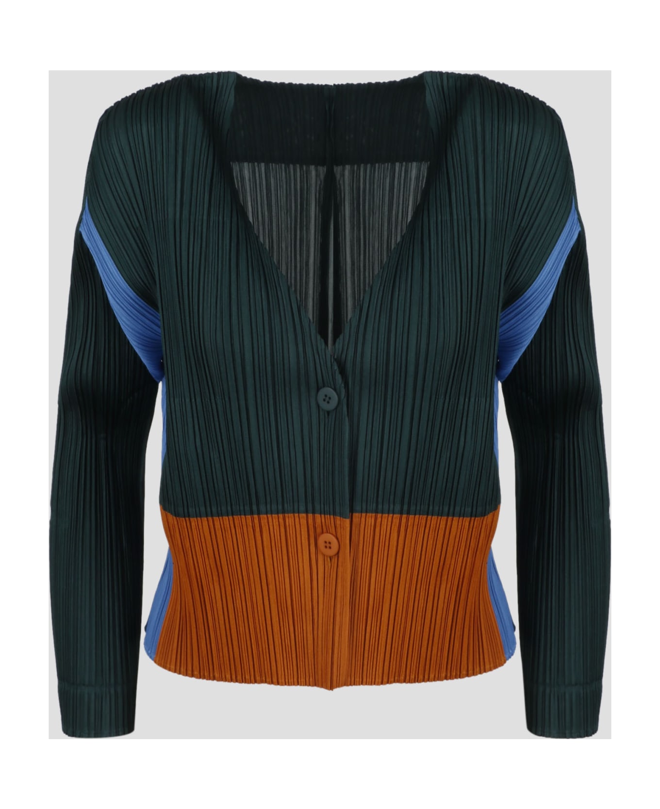 Pleats Please by Issey Miyake cardigan, in pleated fabric features features a graphic colour scheme. - FW22
