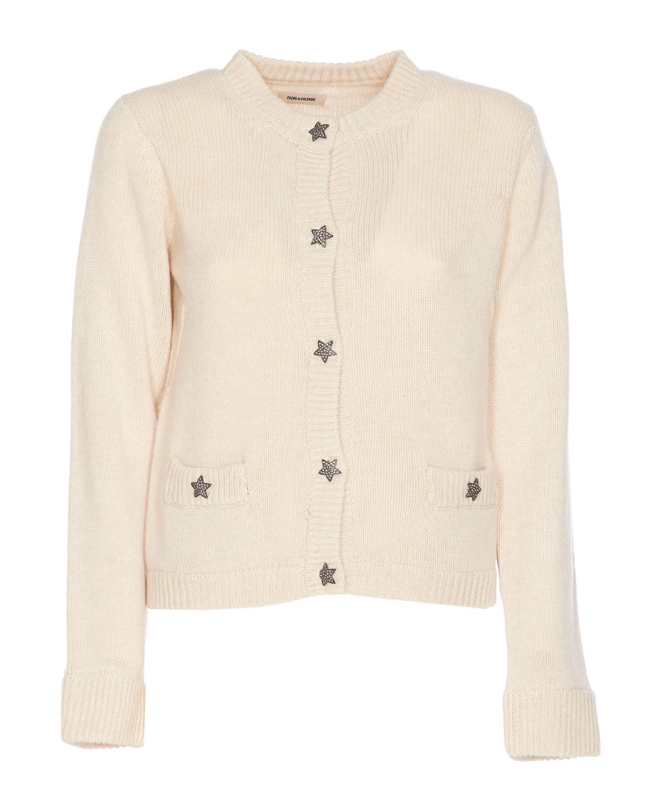 Zadig&Voltaire ecru Marcya biijoux cardigan, star button closure on the front, V-neck, long sleeves