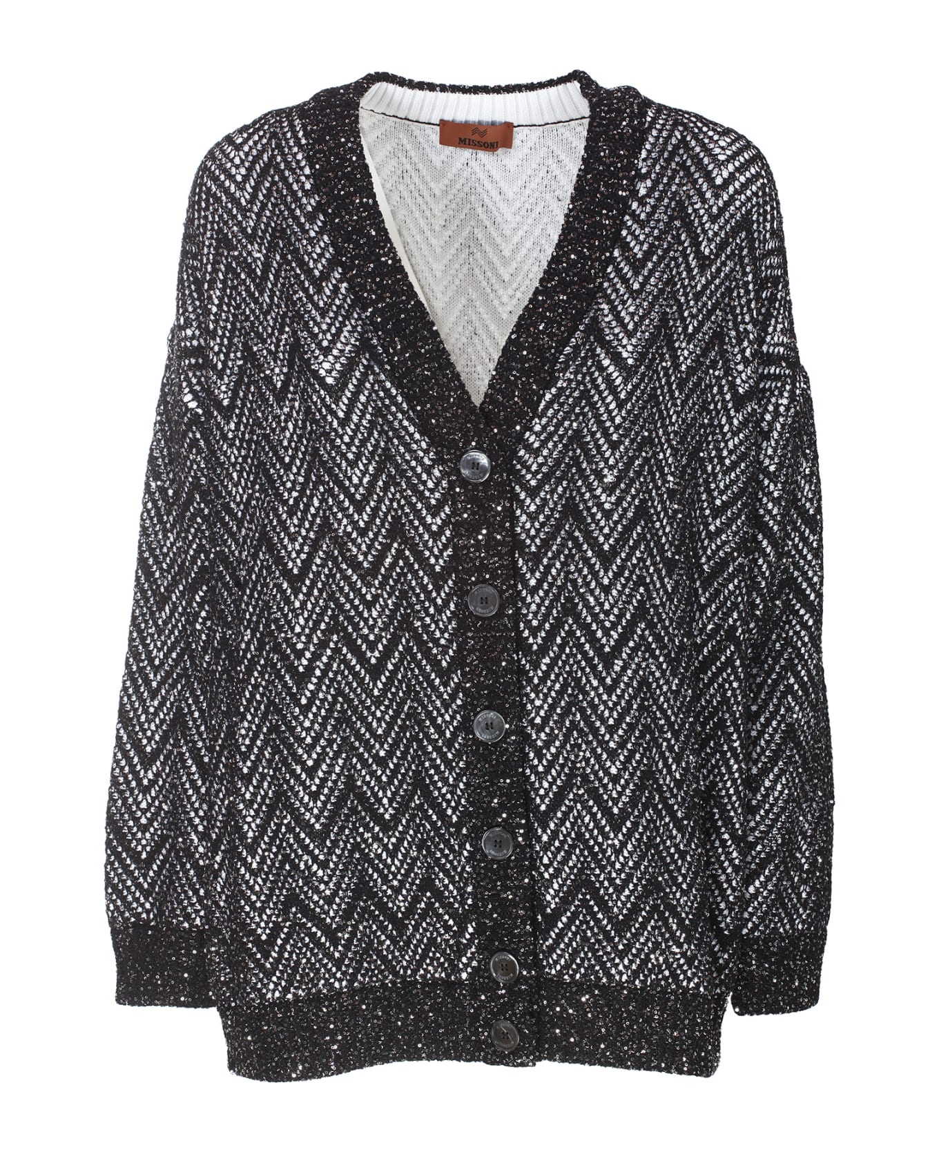 Missoni oversized sequin mesh cardigan. Oversized fit. Made in mesh knit. Long sleeves. Buttons. Composition: 35% Polyamide 35% Polyester 20% Cotton 10% Polyurethane. Made in Italy.