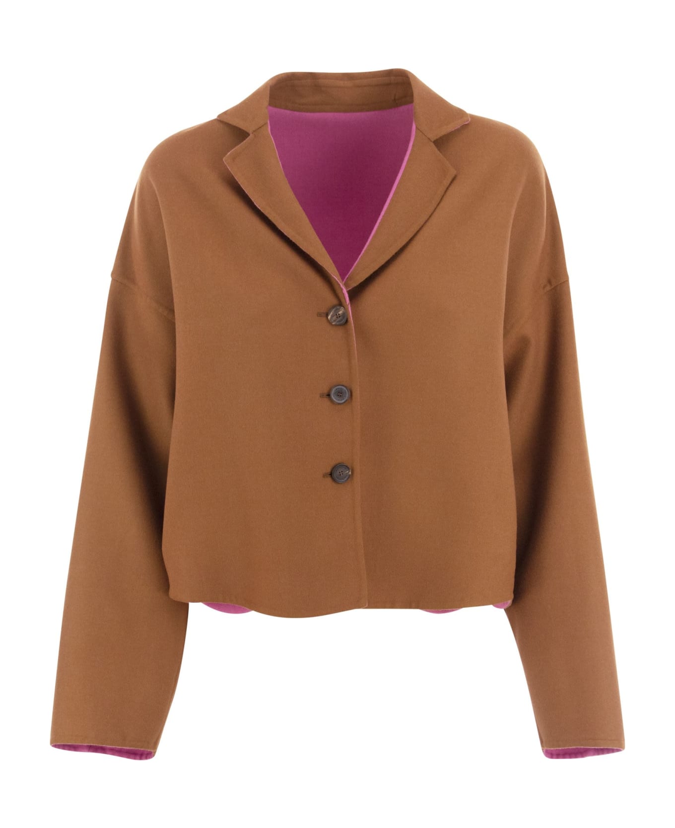 The collection's star cropped shirt jacket, made of wool and silk fabric, recalls an elegance in full Fabiana Filippi style. - Reversible - Lapel collar - 3 button closure buttons DESIGNER ID: CTD273W268 H402 VR16 Composition: 88% Virgin wool, 12% Silk