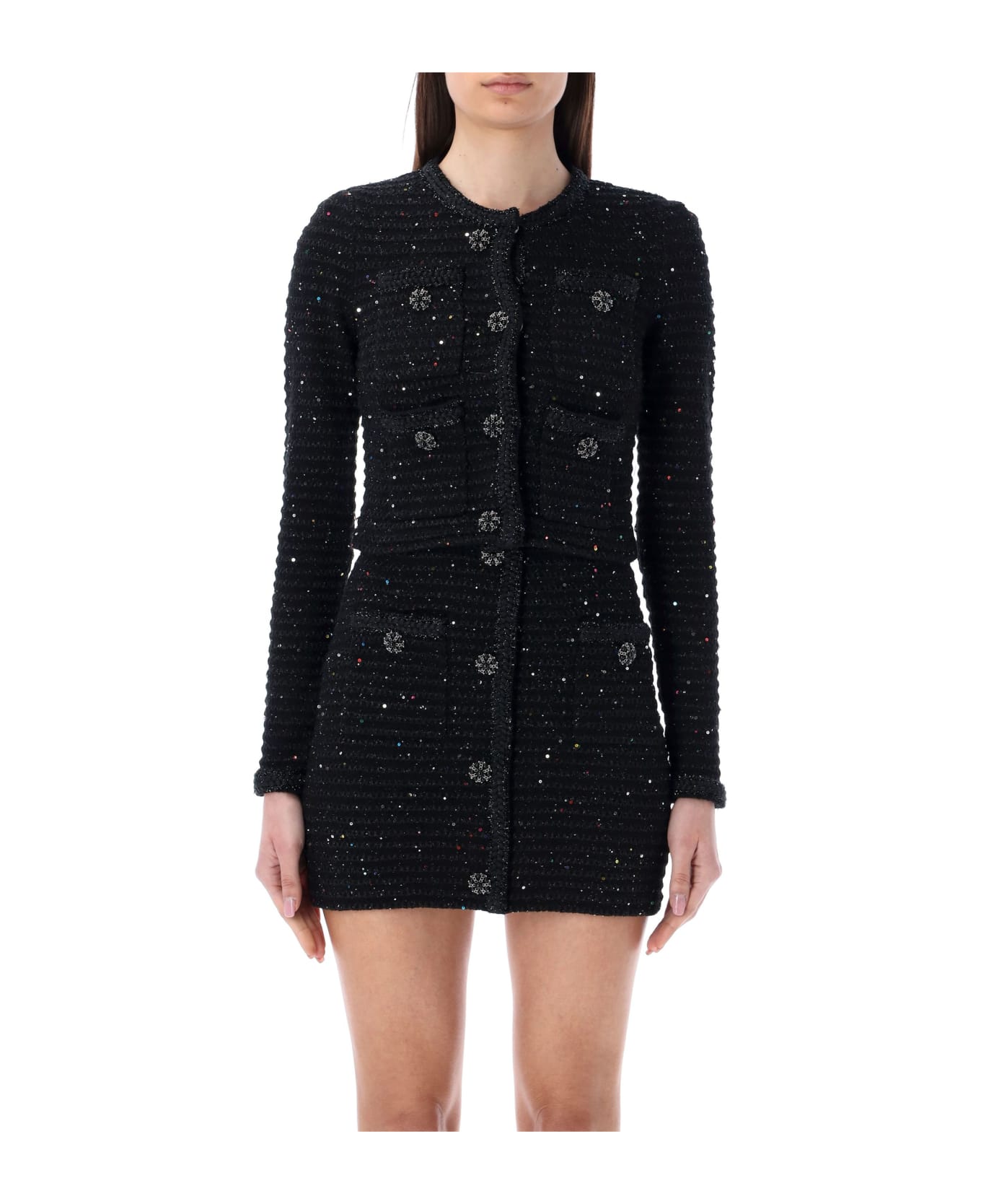 Cotton Blend Sequin Knit Jacket By Self-portrait. Featuring: