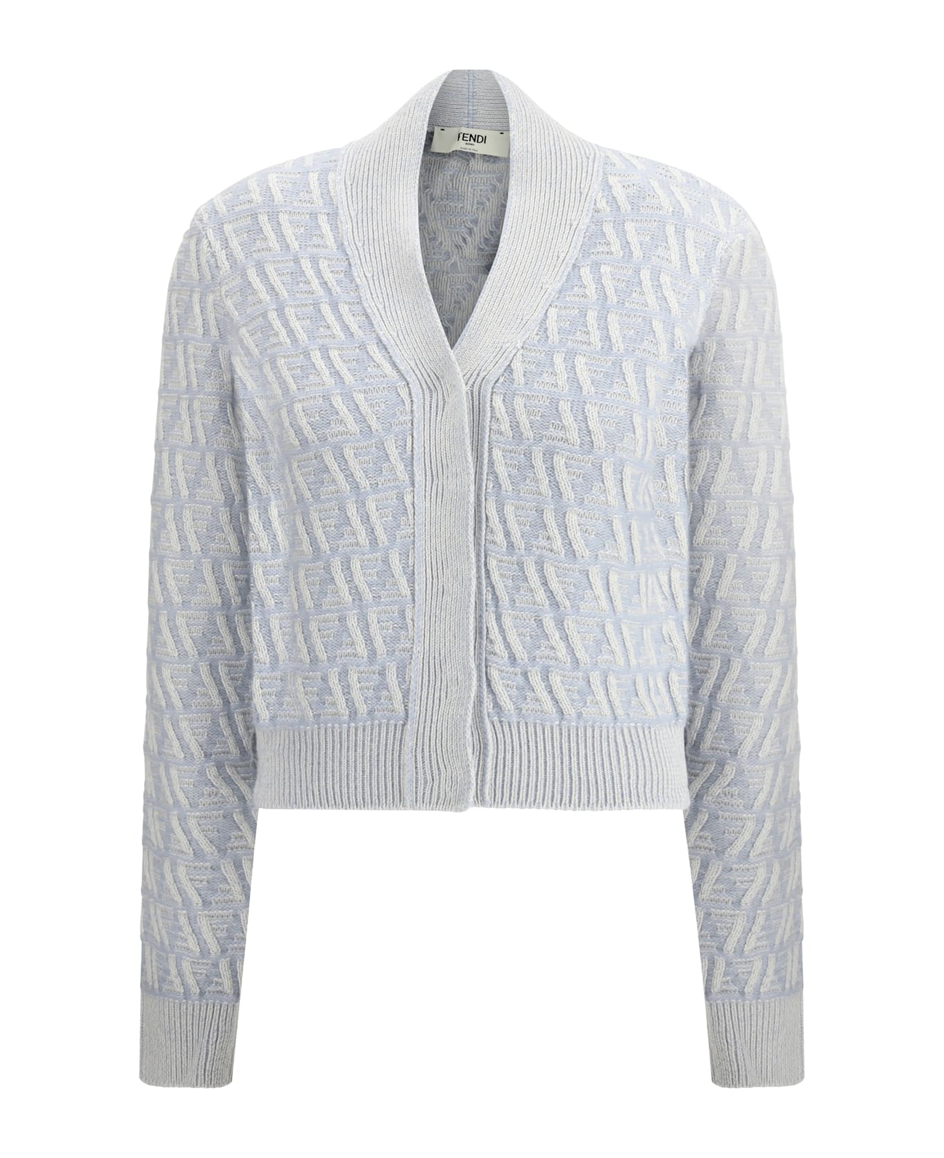 Fendi's silk cardigan features a front neckline and a concealed button closure, giving it an elegant and refined look. ribbed cuffs and hem accentuate the structure. the jacquard weave, with the brand's iconic ff logo repeated all-over, creates a distinctive and easily recognizable effect. the two-tone pattern adds a touch of elegance and modernity to the design, making this cardigan a sophisticated and versatile garment, perfect for a refined and contemporary look.