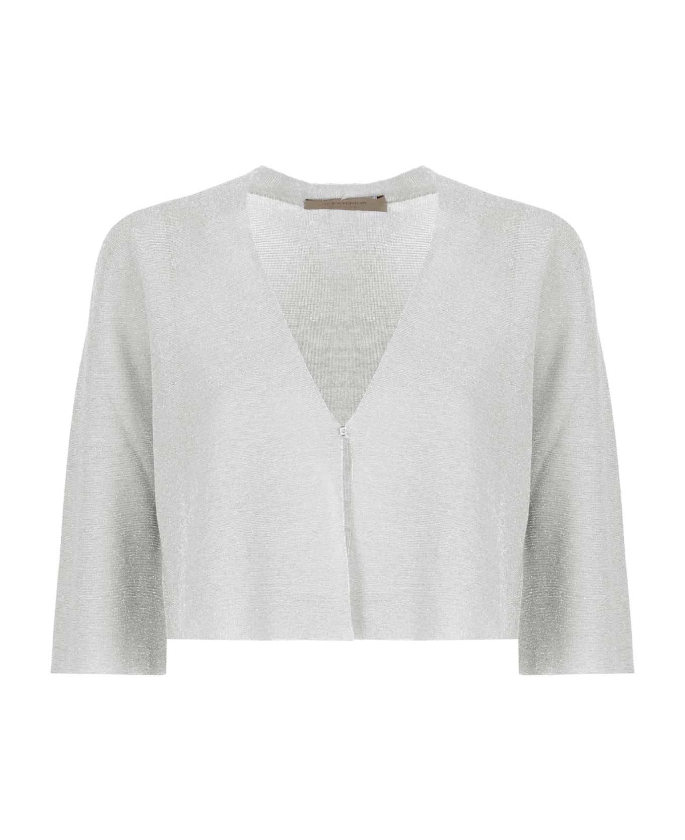 - Grey D. Exterior viscose cardigan for woman - V-neck - Long sleeves - Front hook fastening - All-over lurex details