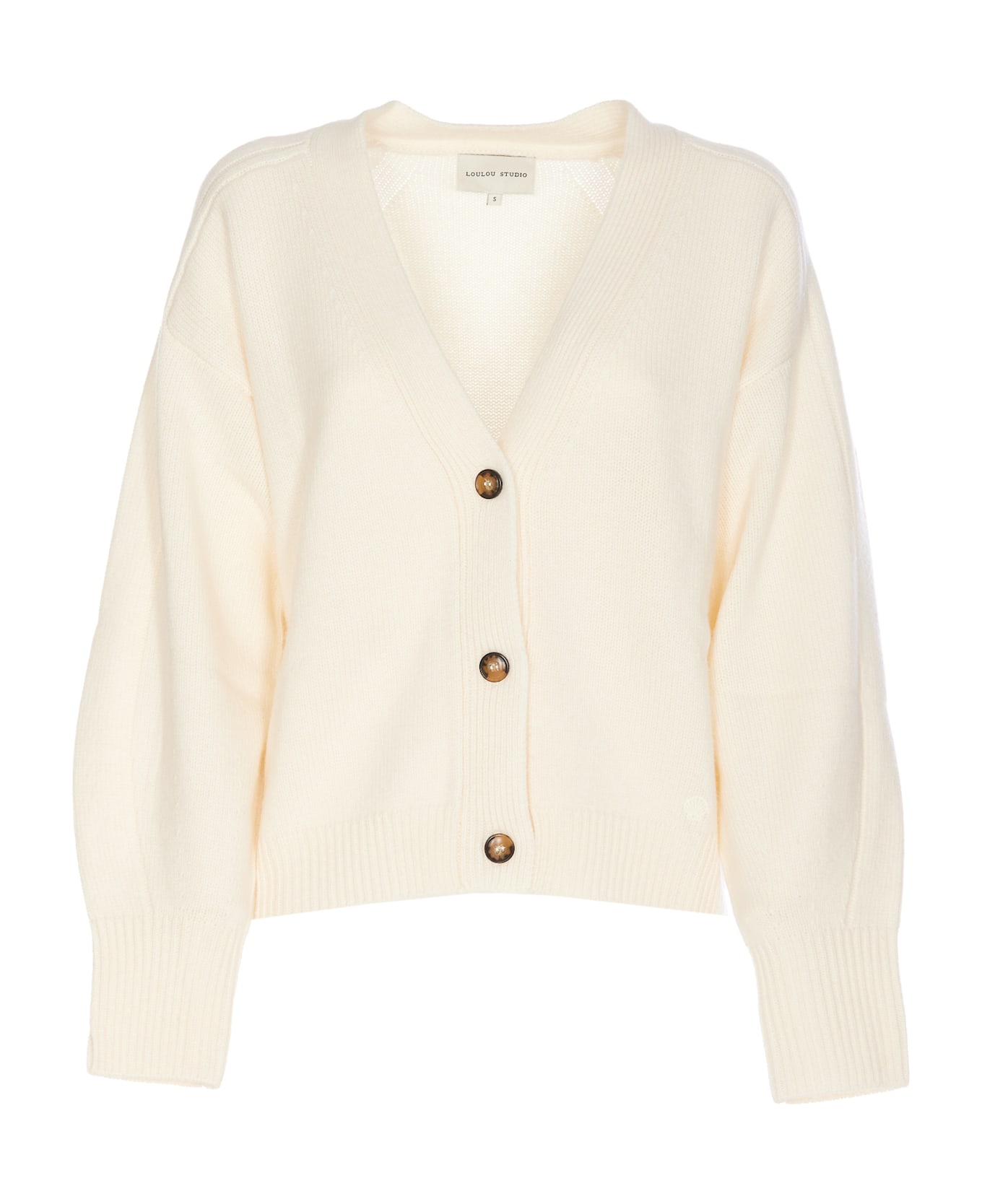 Loulou Studio white Zanzibar cardigan, v neck, buttons closure