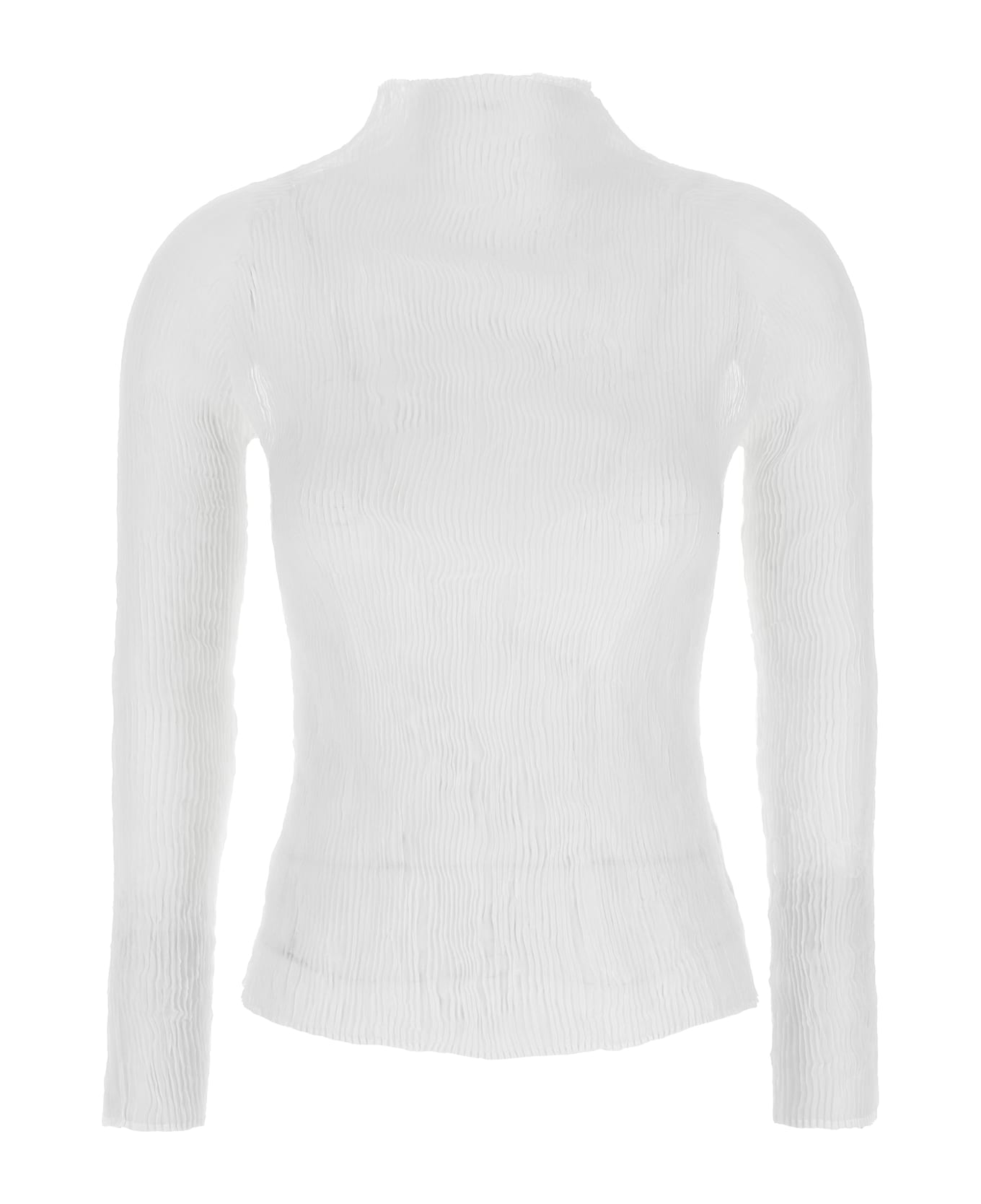 'Chiffon Twist-56' sweater in semi-transparent pleated fabric, high neck, long sleeves. SUSTAINABLE: Product made from recycled polyester.
