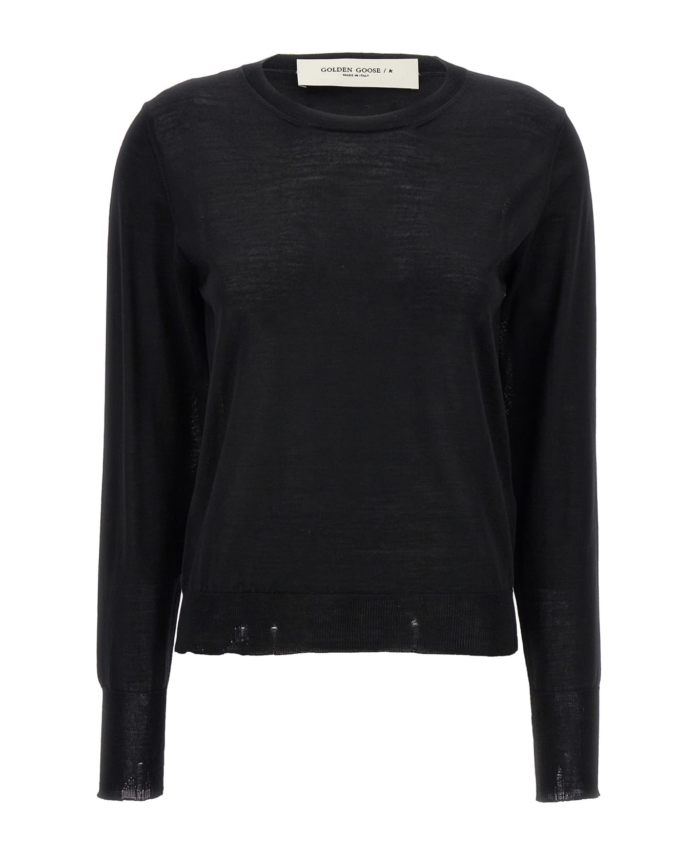 'Demilee' wool sweater with distressed details, crew neck, long cuffed sleeves.