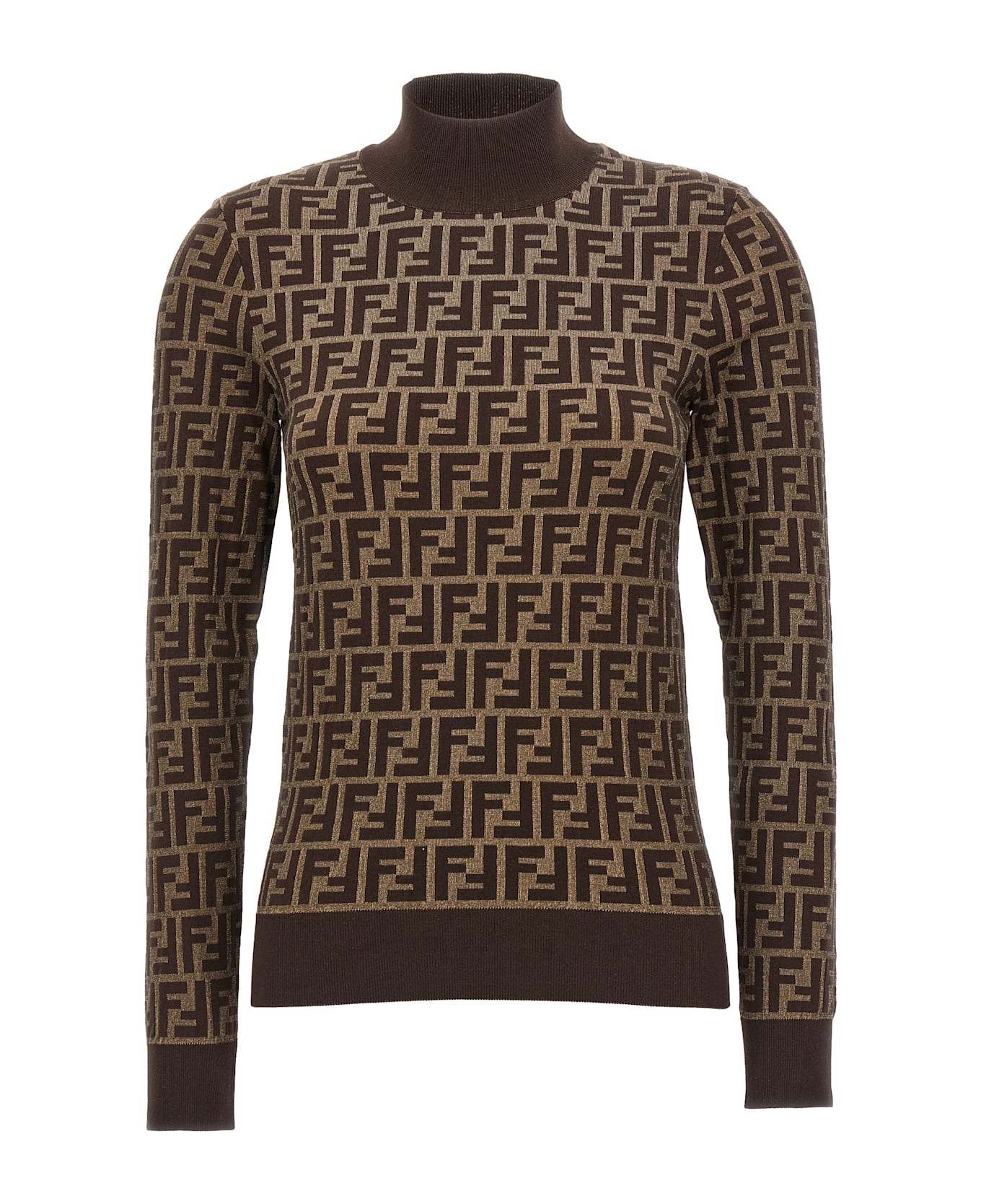Cotton sweater with all-over 'FF' logo pattern, high neck, long cuffed sleeves. Composition: 100% cotton